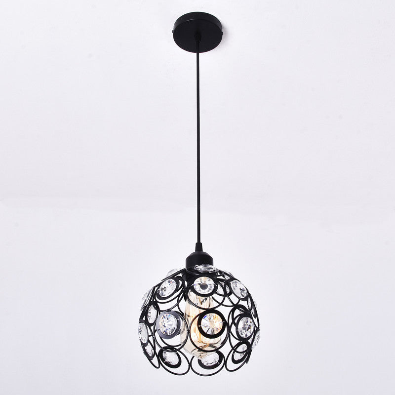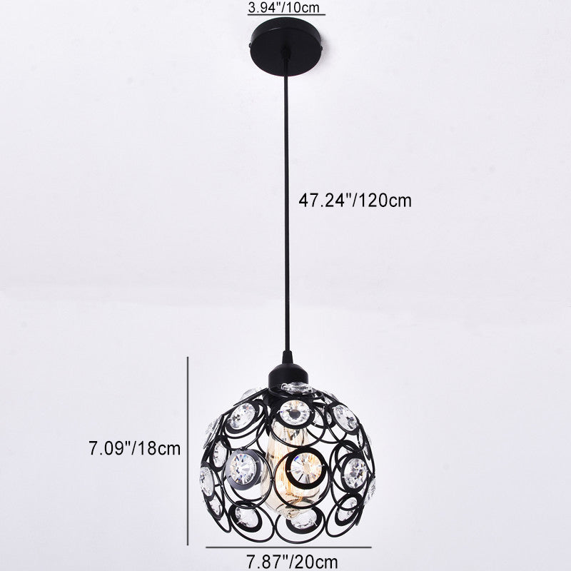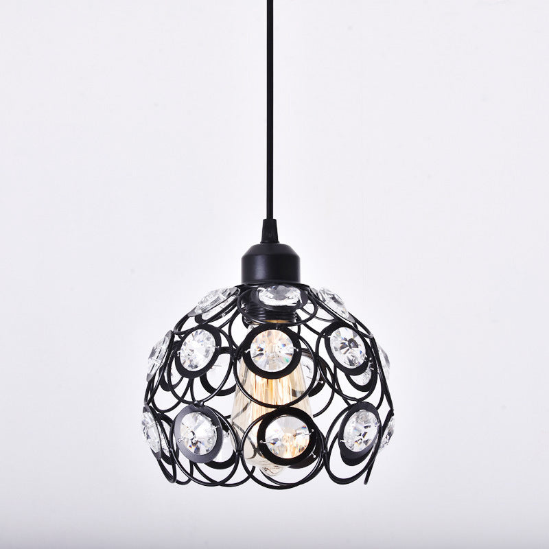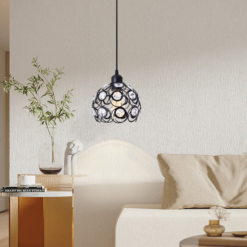 Modern Minimalist Round Dome Iron Crystal 1-Light Pendant Light For Living Room