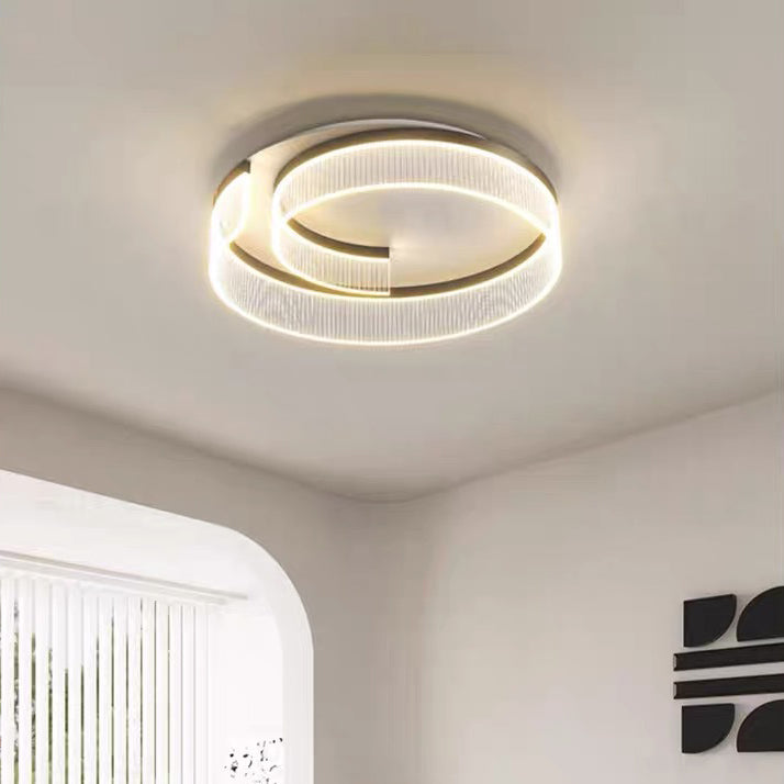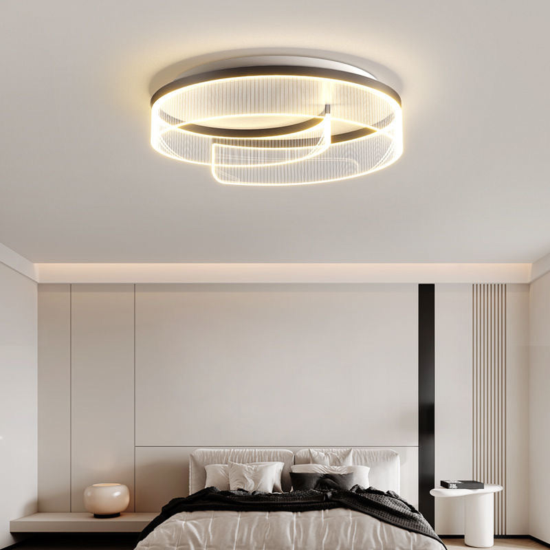 Modern Minimalist Round Hardware Aluminum Stripe Acrylic LED Flush Mount Ceiling Light For Bedroom