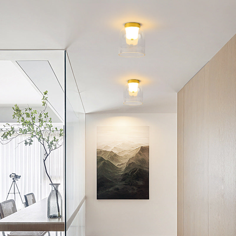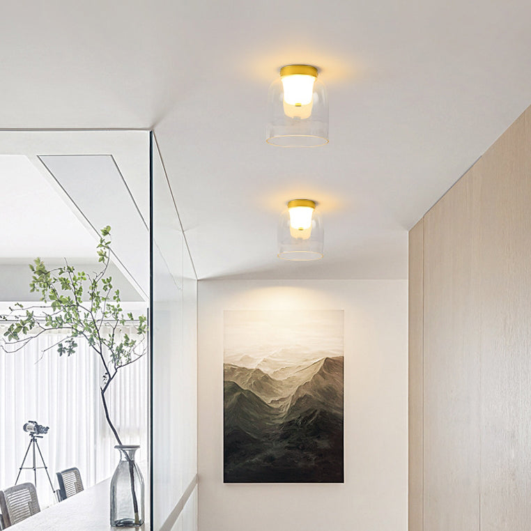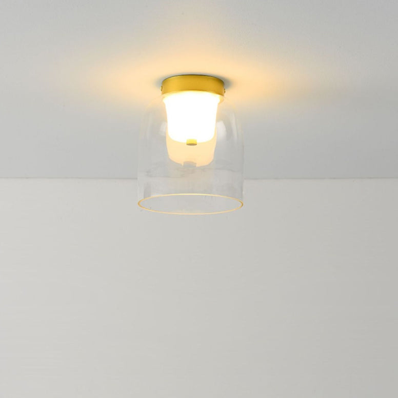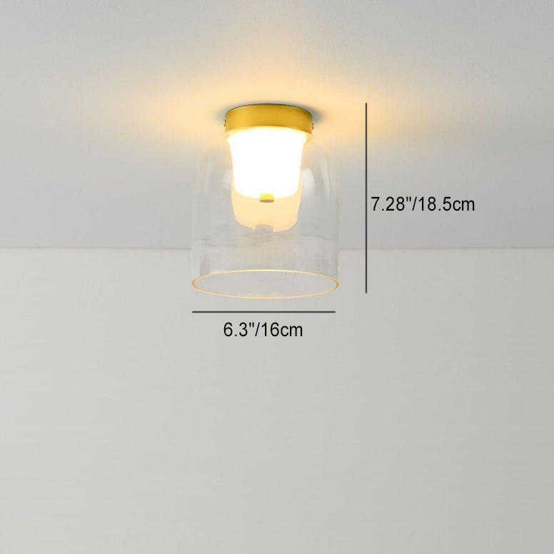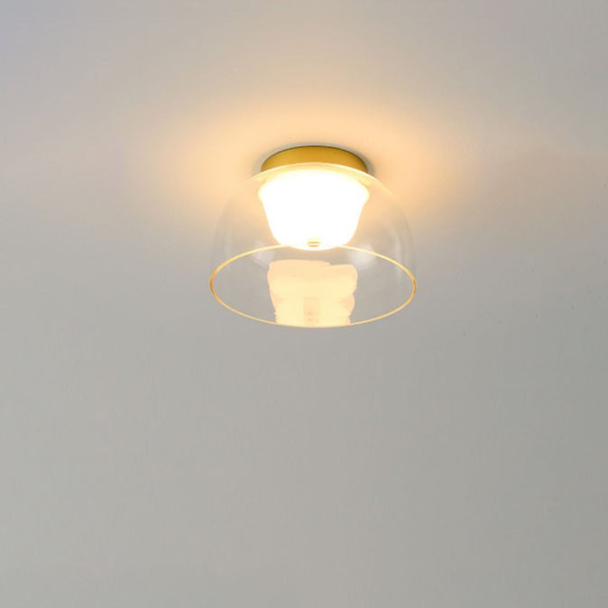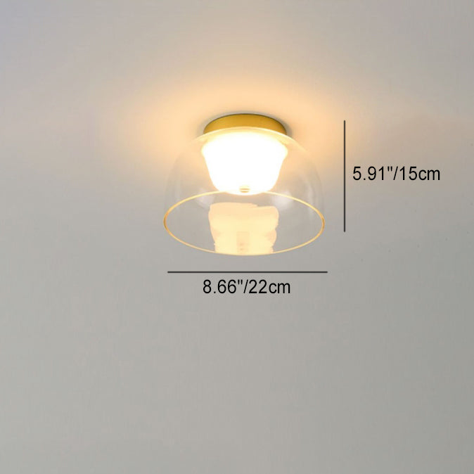 Modern Minimalist Round Hardware Glass Cup Shade LED Flush Mount Ceiling Light For Bedroom