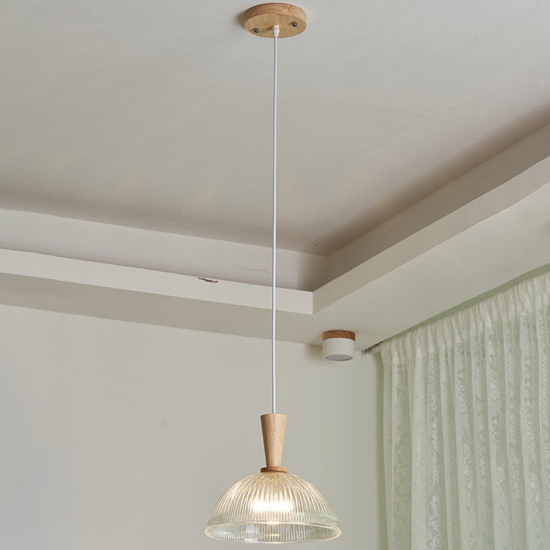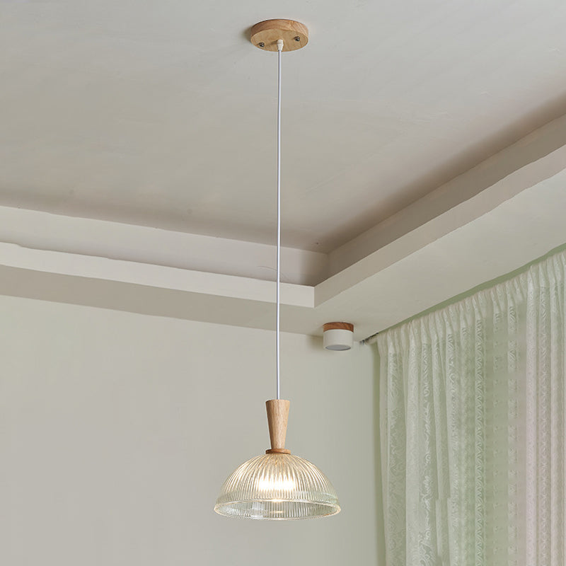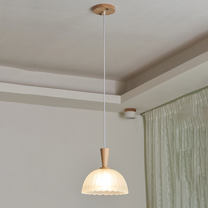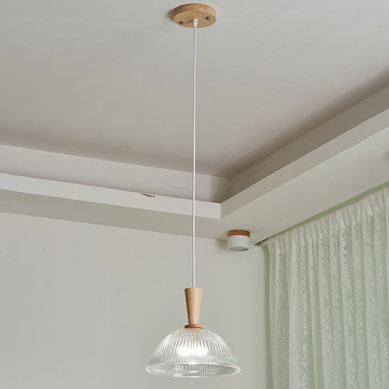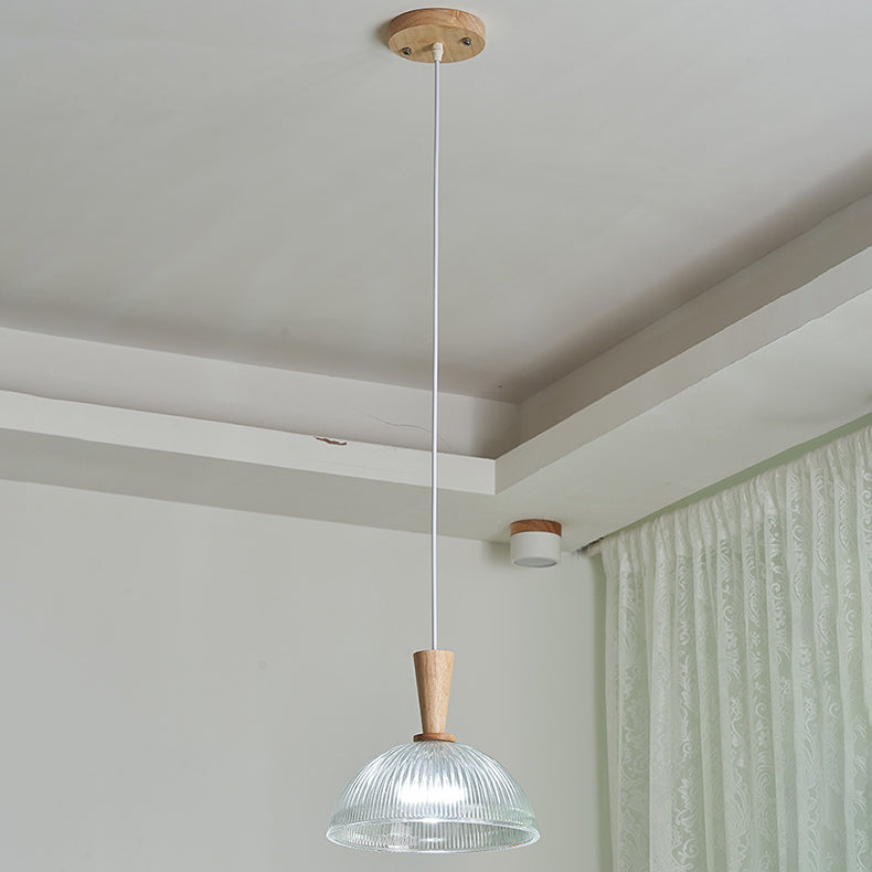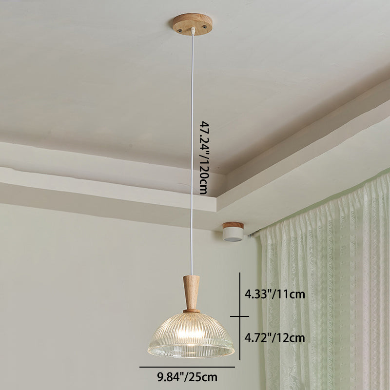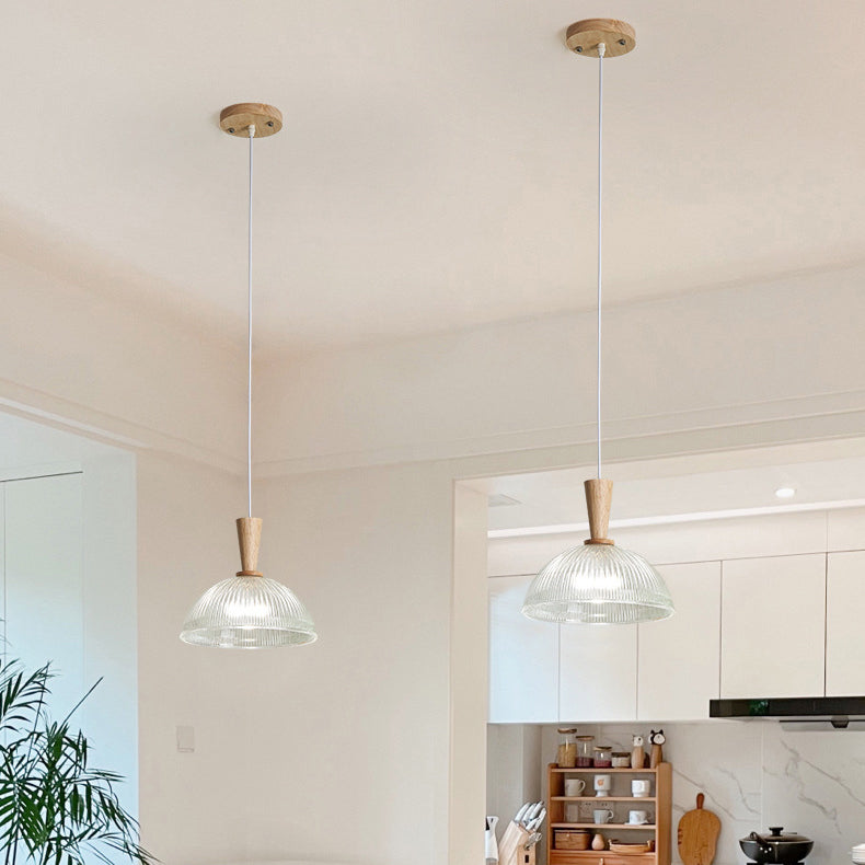 Modern Minimalist Round Lace Stripe Glass Wood 1-Light Pendant Light For Living Room
