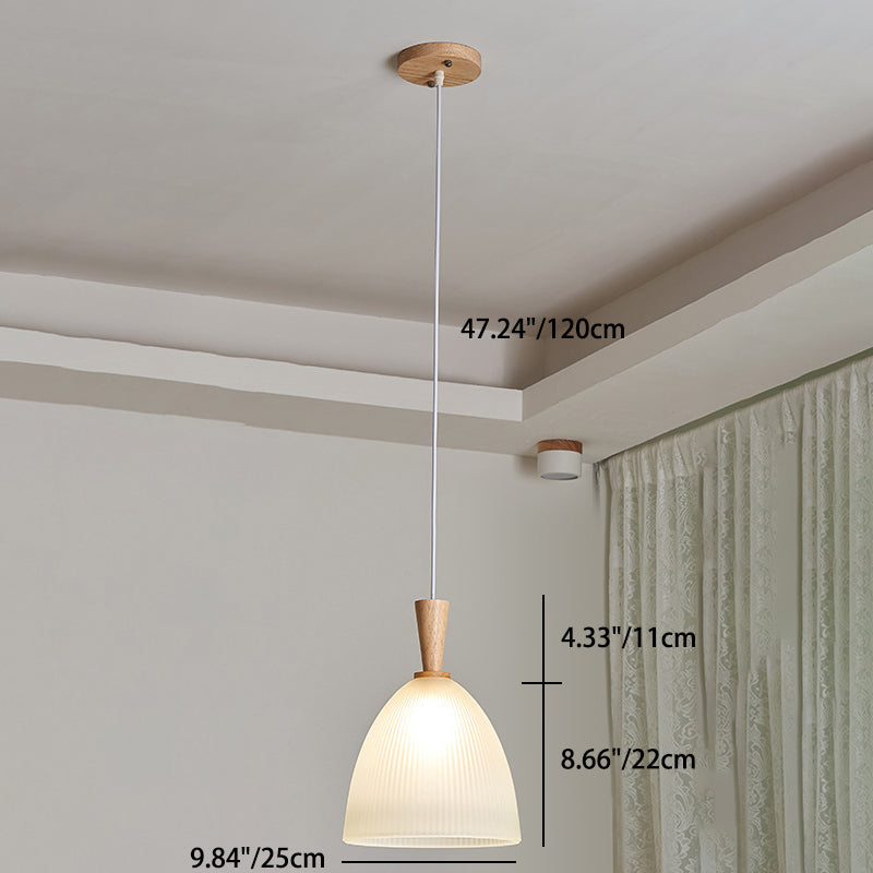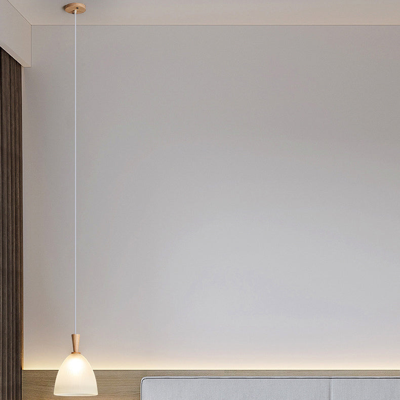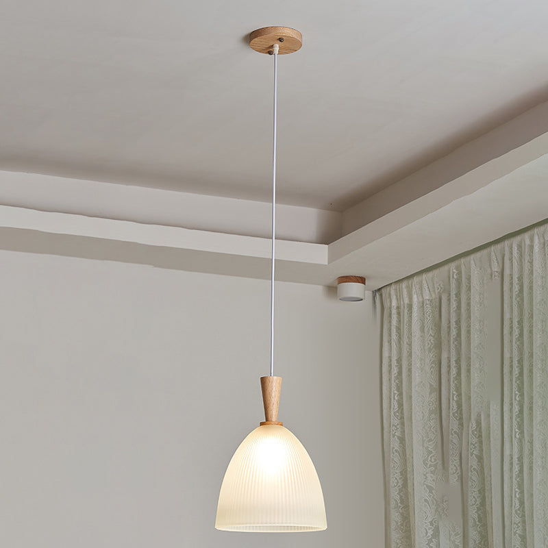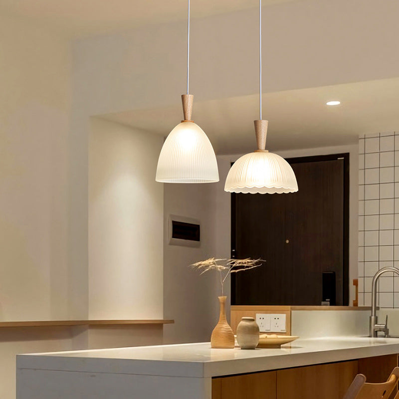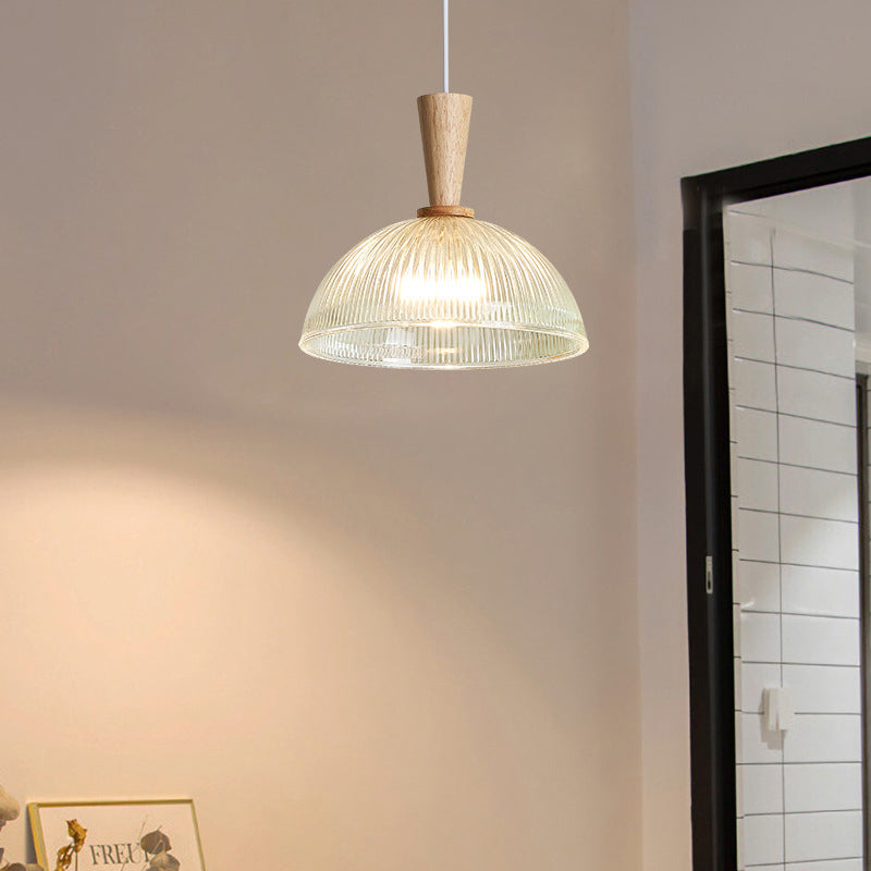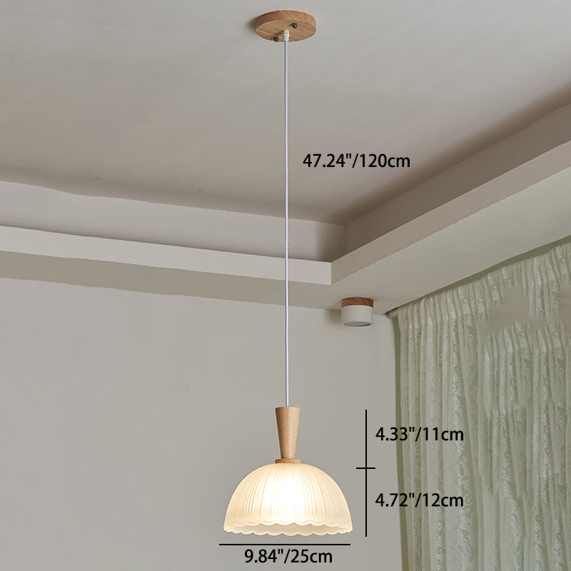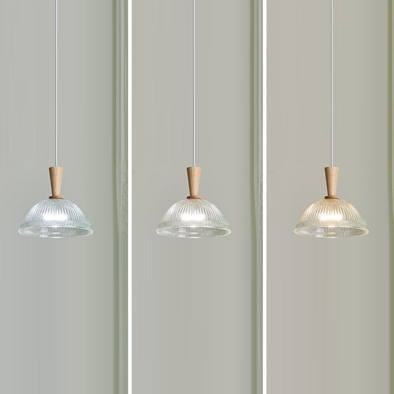 Modern Minimalist Round Lace Stripe Glass Wood 1-Light Pendant Light For Living Room
