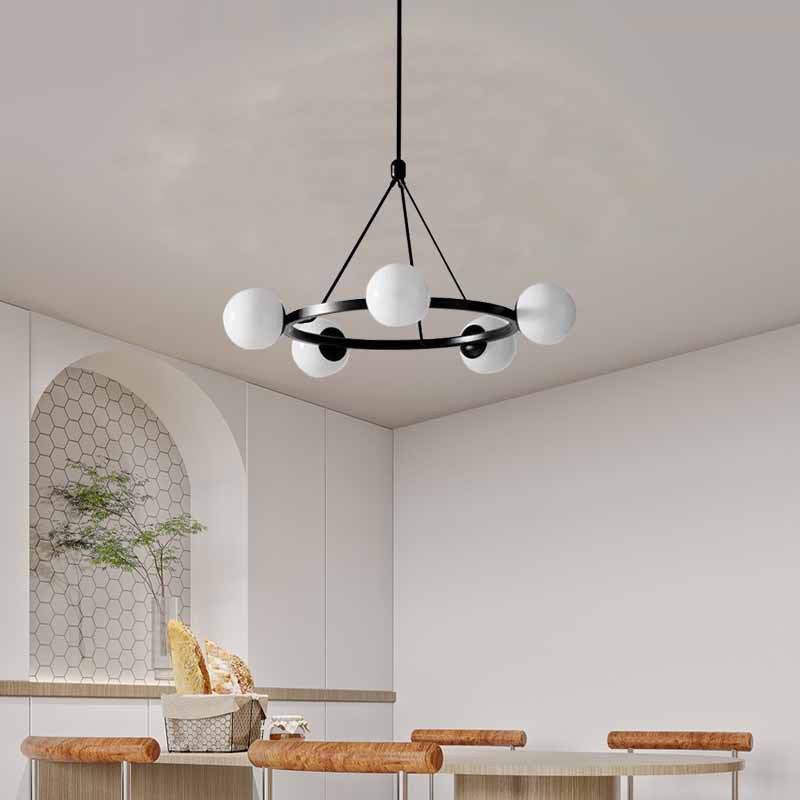 Modern Minimalist Round Orb Iron Frame Glass Shade 5-Light Chandelier For Living Room