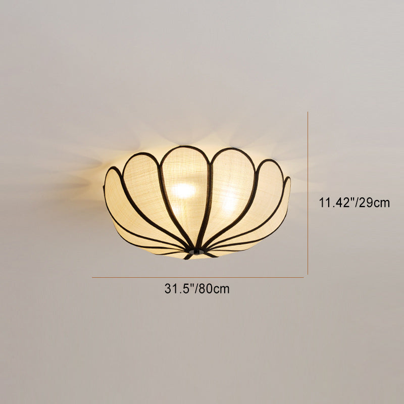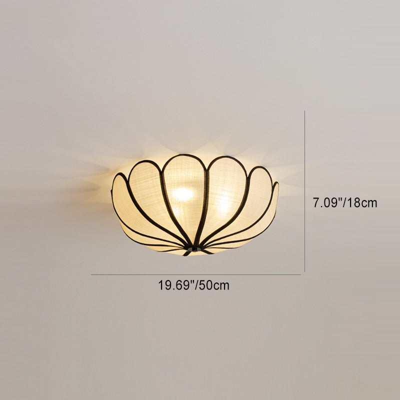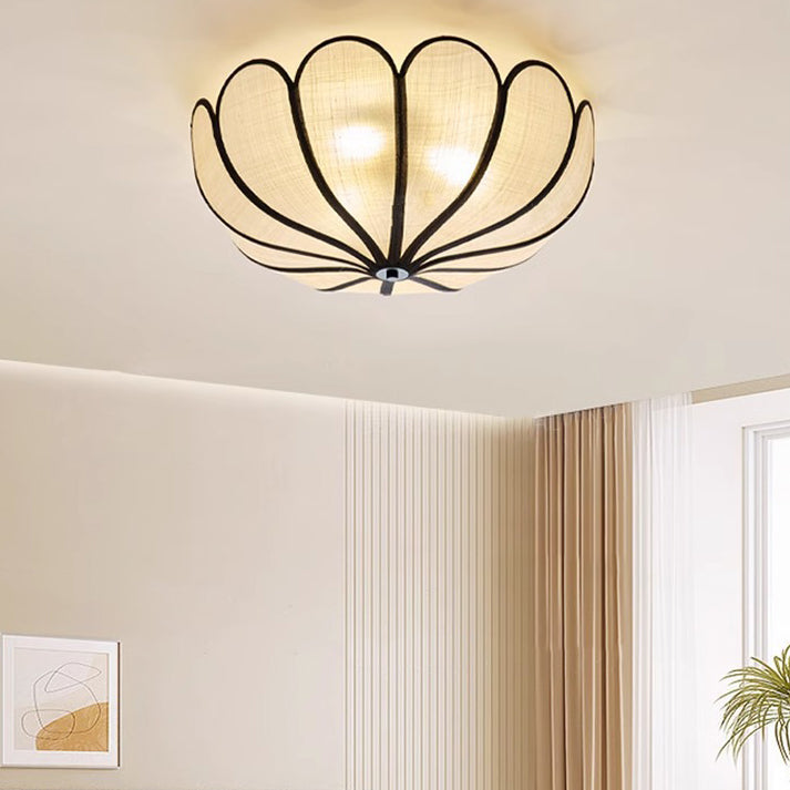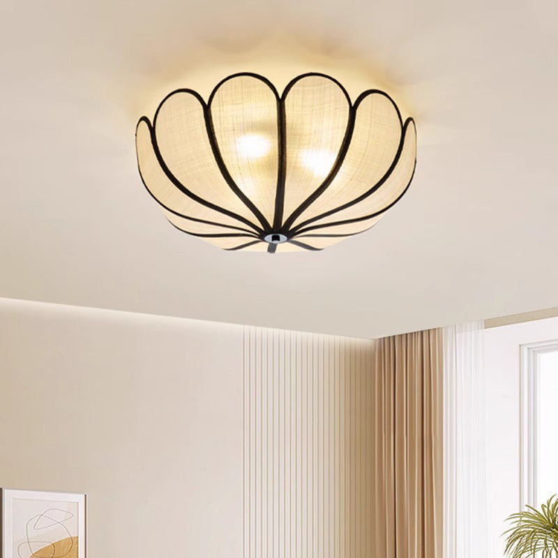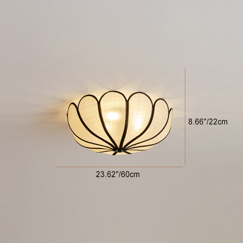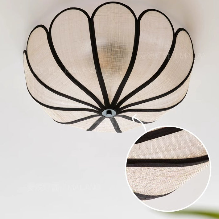 Modern Minimalist Round Petal Plant Fiber 3-Light Flush Mount Ceiling Light For Living Room