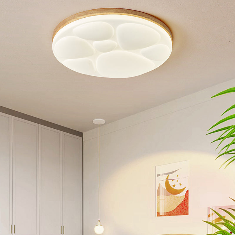 Modern Minimalist Round Rubberwood Iron Acrylic LED Flush-Mount Ceiling Light For Bedroom