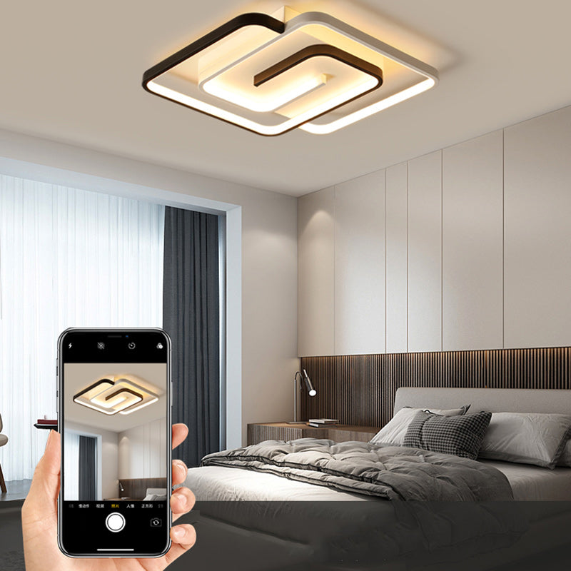 Modern Minimalist Round Square Diamond Acrylic Iron LED Flush Mount Ceiling Light For Bedroom