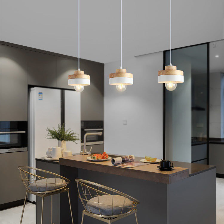 Modern Minimalist Round Square Iron Wood 1-Light Pendant Light For Bedroom