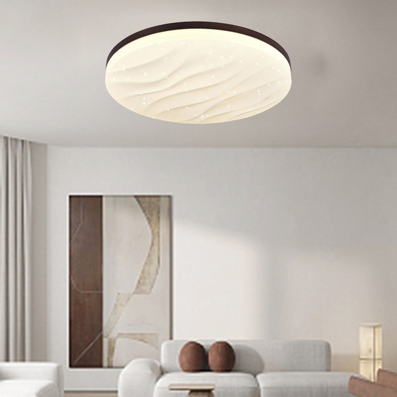 Modern Minimalist Round Wood Acrylic LED Flush Mount Ceiling Light For Living Room