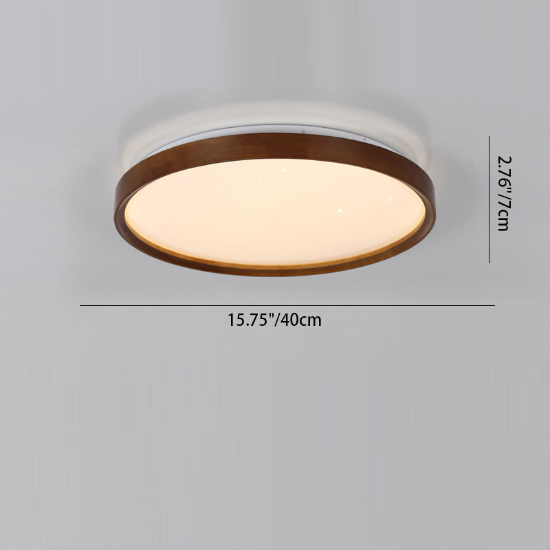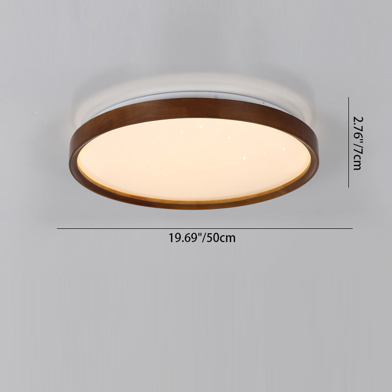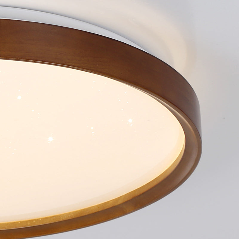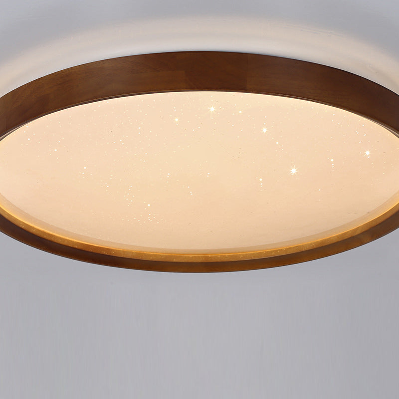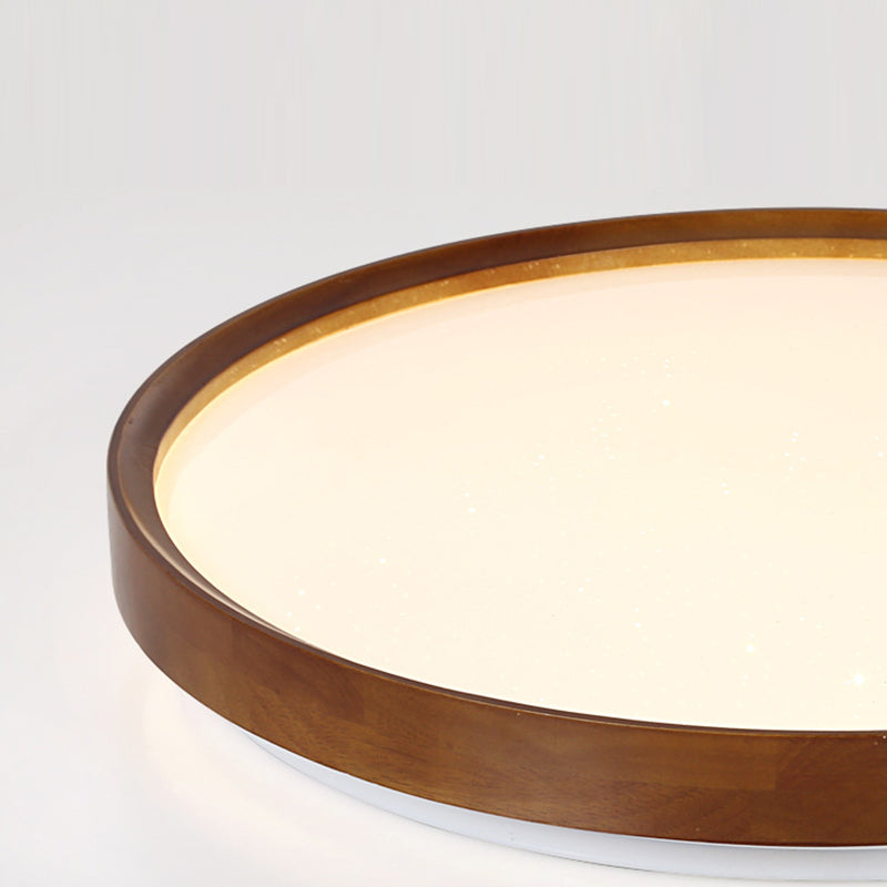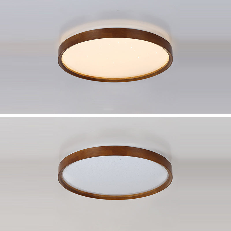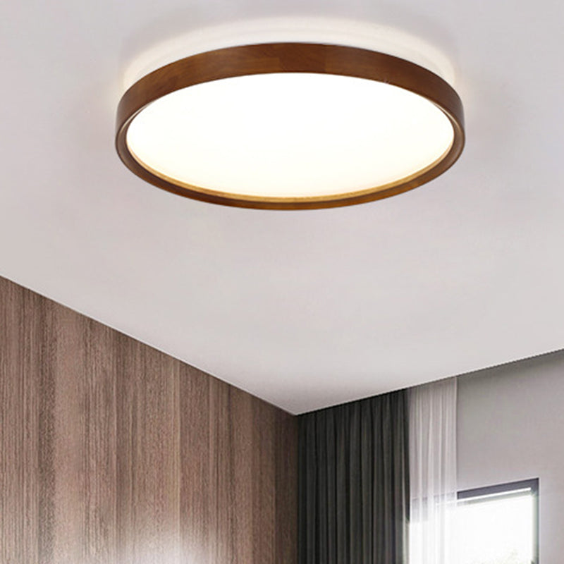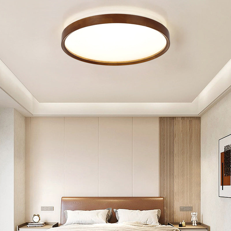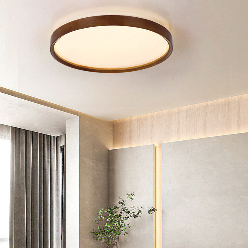 Modern Minimalist Round Wood Iron PC Shade LED Flush Mount Ceiling Light For Bedroom