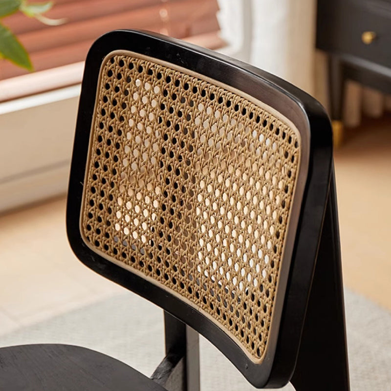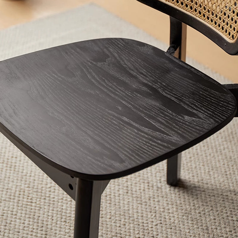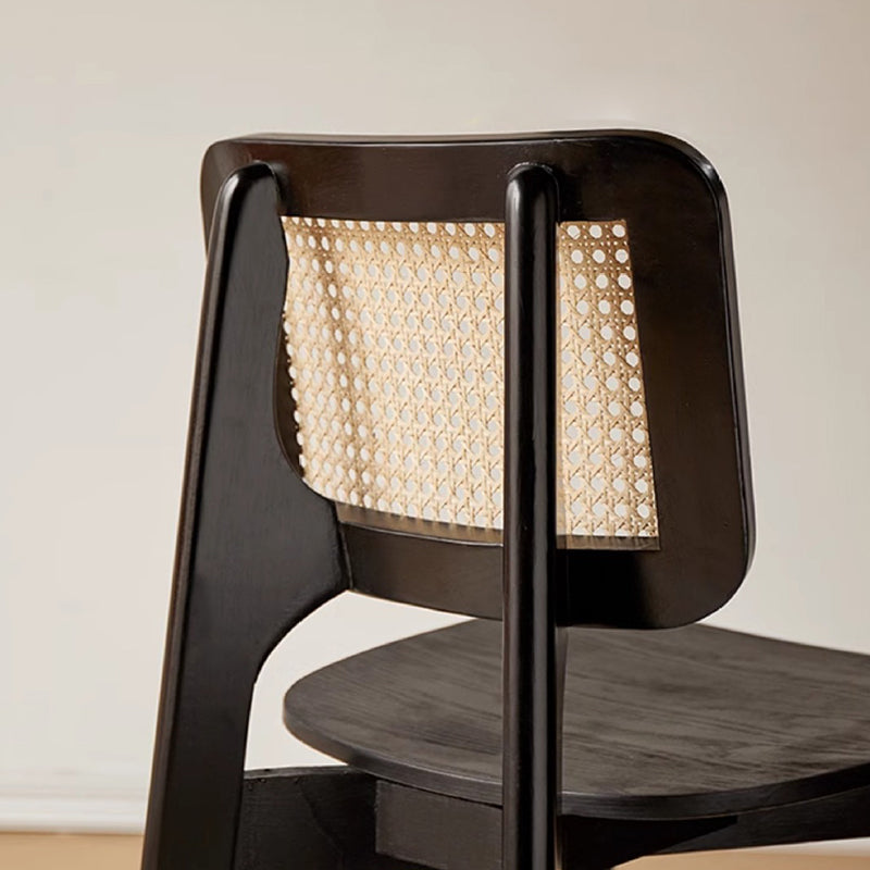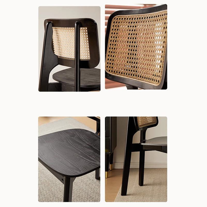 Modern Minimalist Skeleton Square Back Solid Wood Rattan Dining Chair Backrest For Dining Room