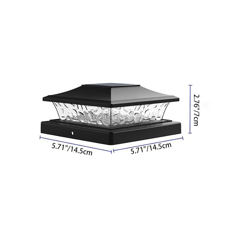This modern minimalist LED solar post light features a black PP and PS material with a square pillar design and a water ripple effect, perfect for use in gardens, yards, and fences. With waterproof functionality, it’s ideal for various outdoor environments, providing an eco-friendly and energy-efficient lighting solution for your space.