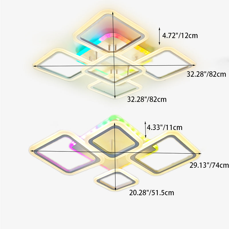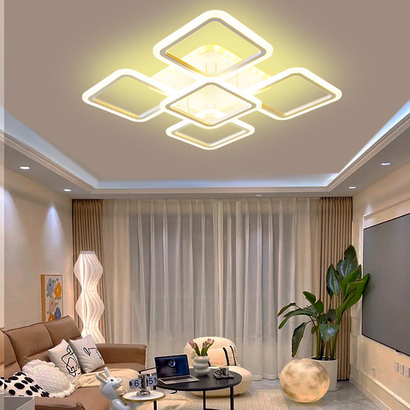 Modern Minimalist Square Stacked Acrylic Iron LED Flush Mount Ceiling Light For Living Room