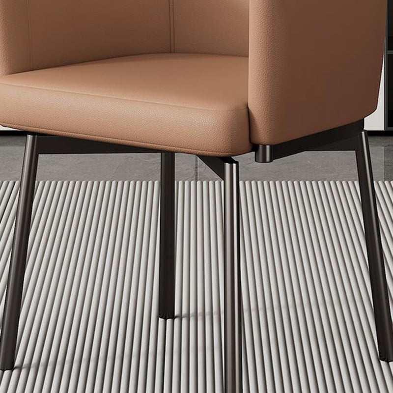 Modern Minimalist Square Upholstered Microfiber Leather Metal Dining Chair Backrest Armrest For Dining Room