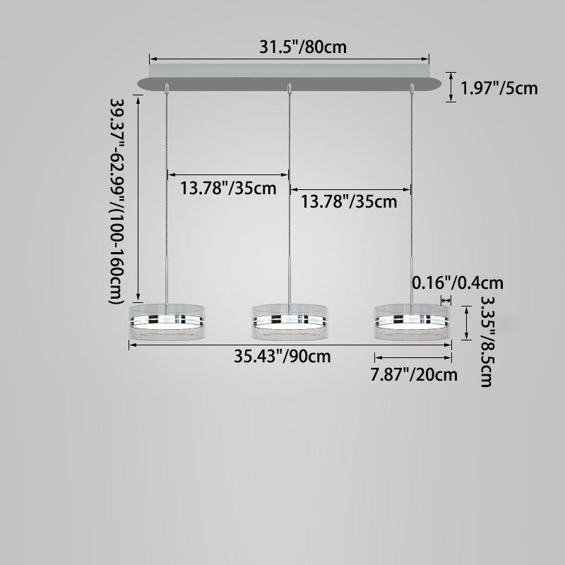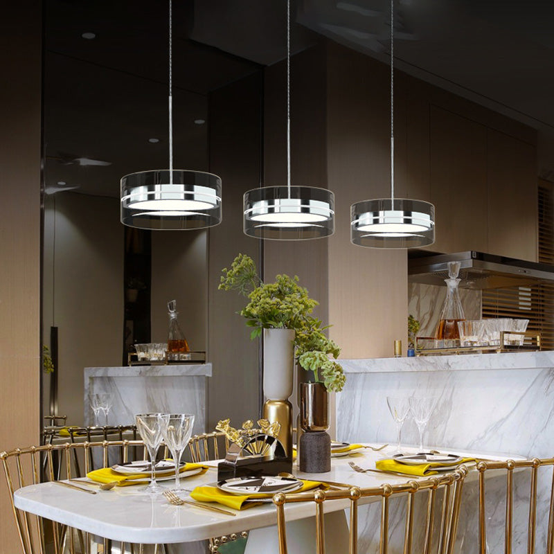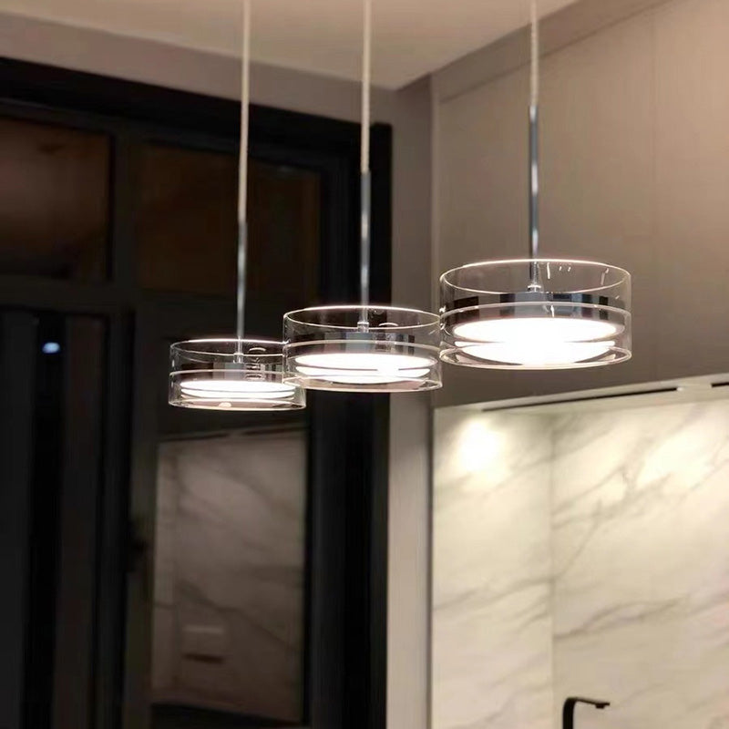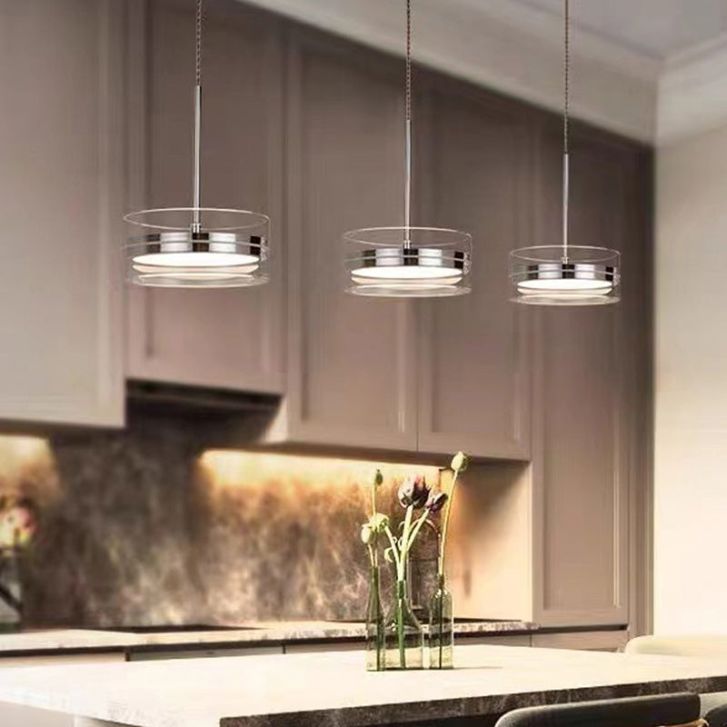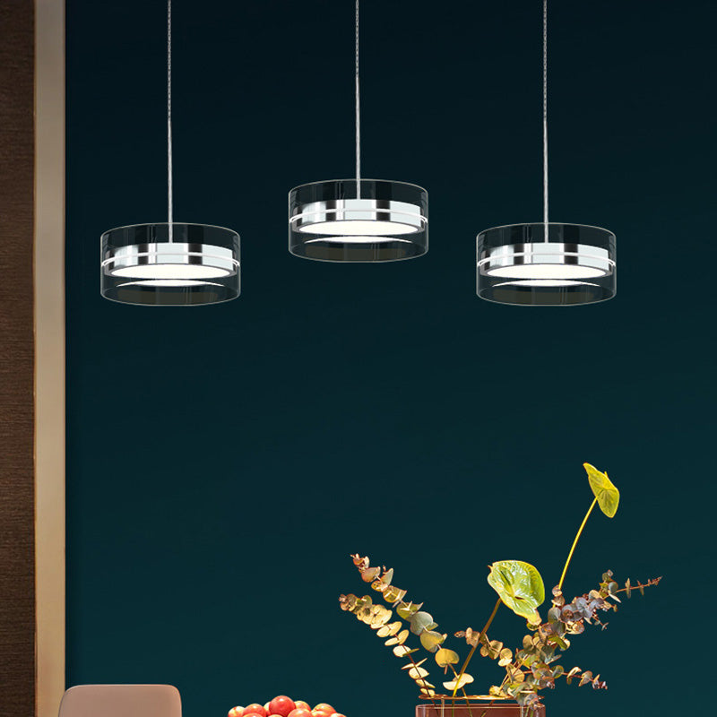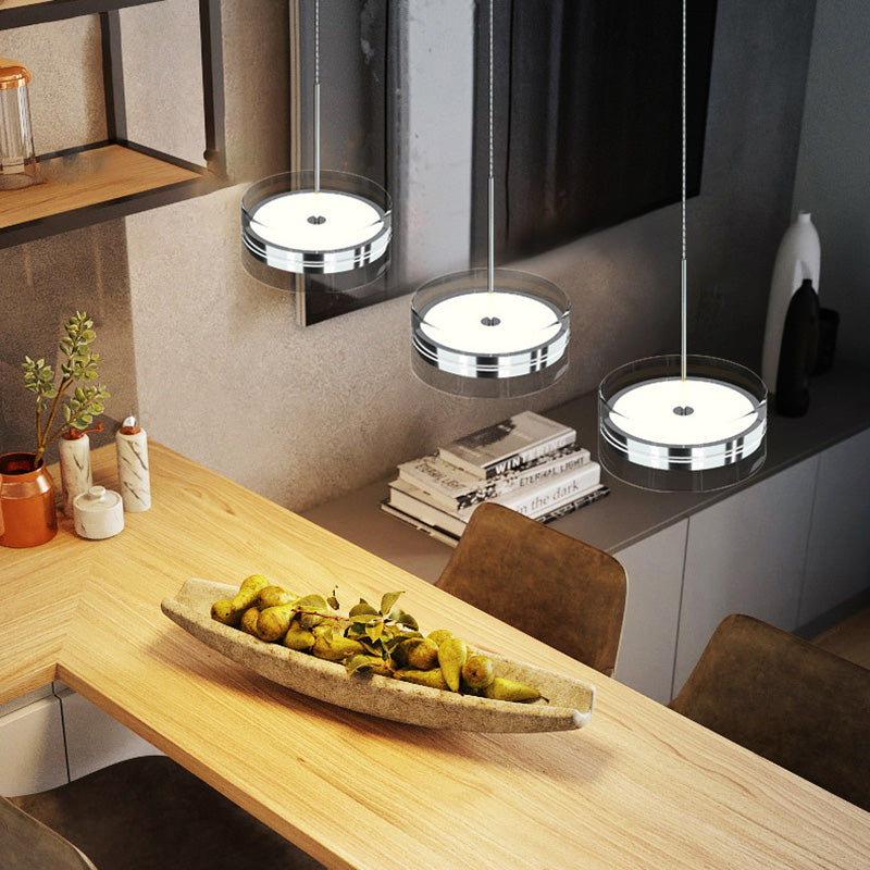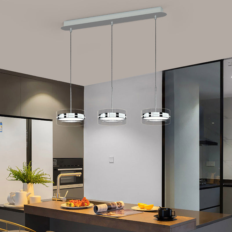 Modern Minimalist Stainless Steel Glass Round 1/3 Light Island Light Chandelier For Dining Room