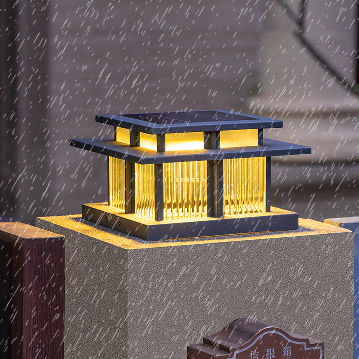 This black square outdoor light features a modern stainless steel and glass build with energy-efficient LED illumination. Equipped with solar charging and waterproof protection, it's perfect for courtyard pillars, garden entrances, and balconies, adding both function and style.
