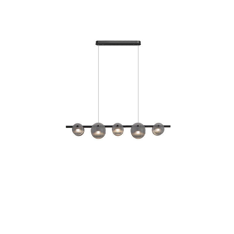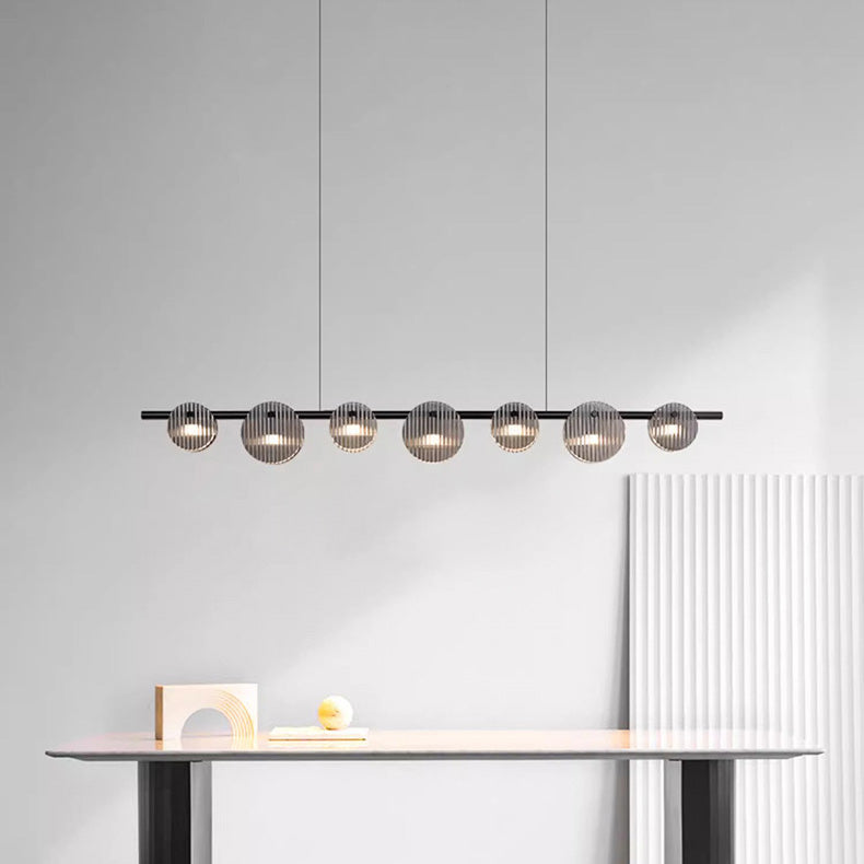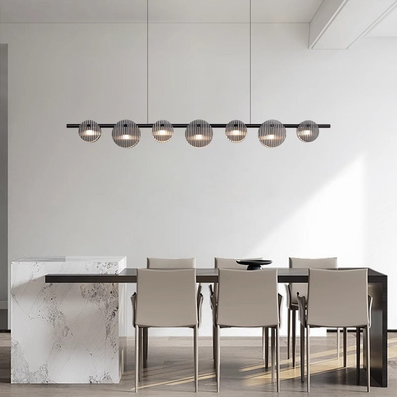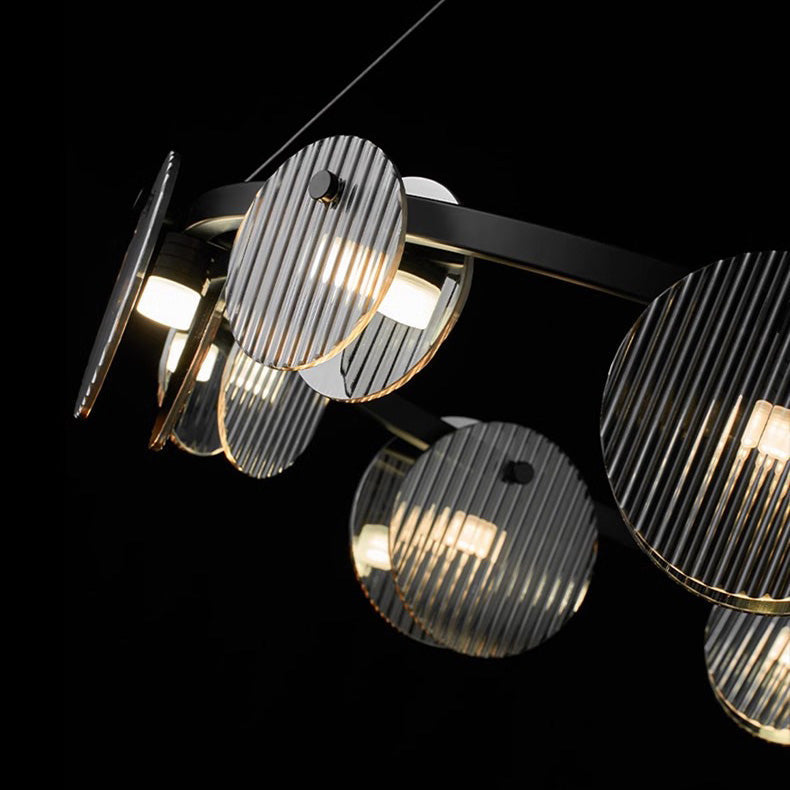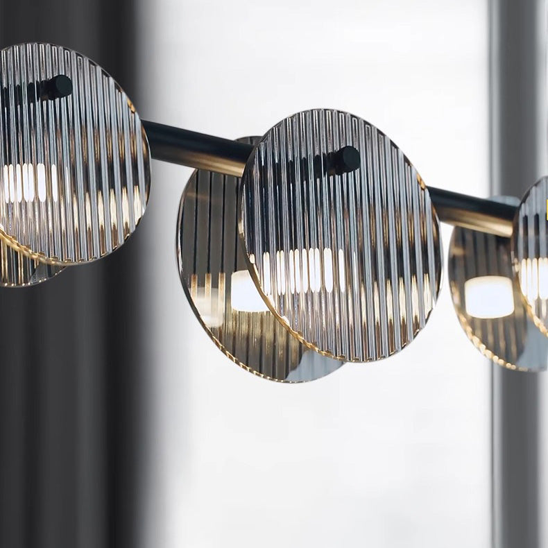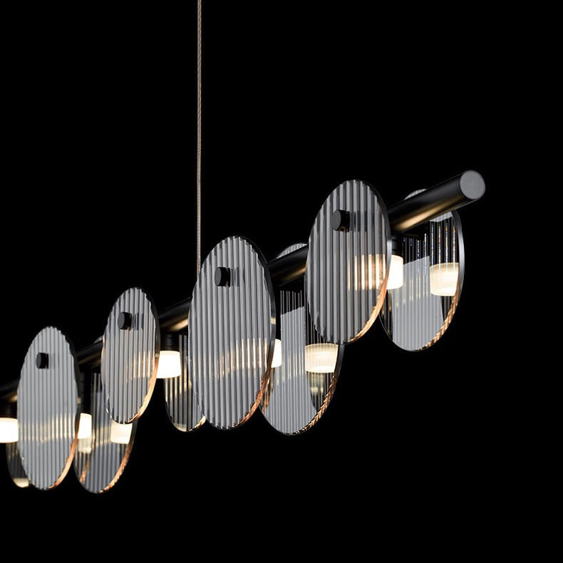 Modern Minimalist Stainless Steel Vertical Grain Glass Disc LED Island Light Chandelier For Entertainment Room