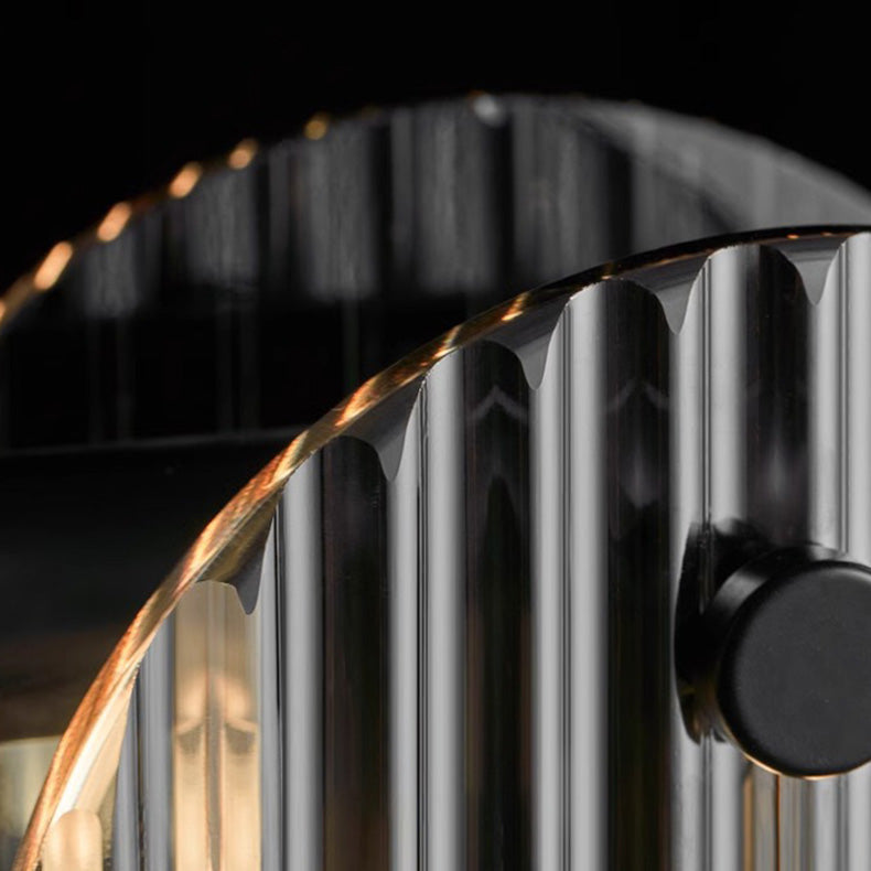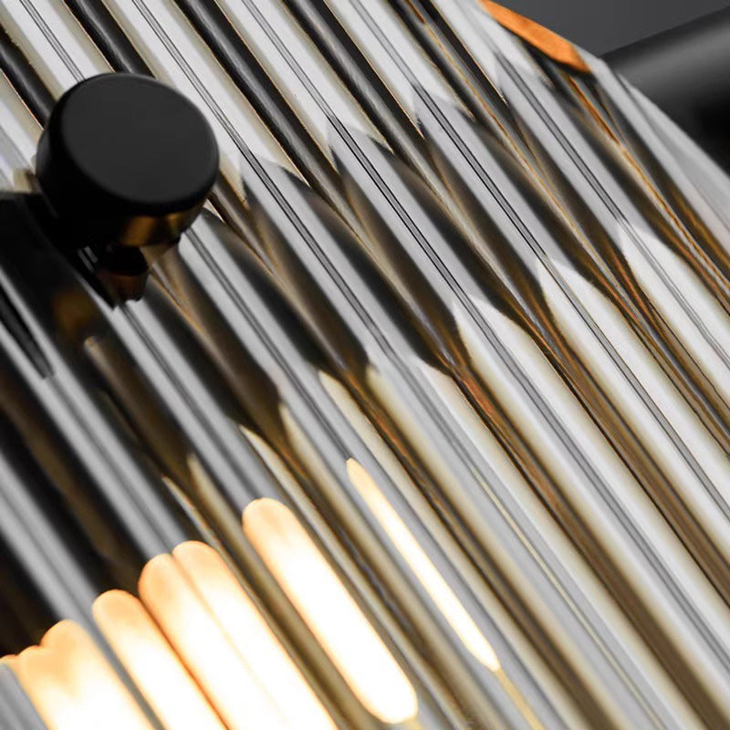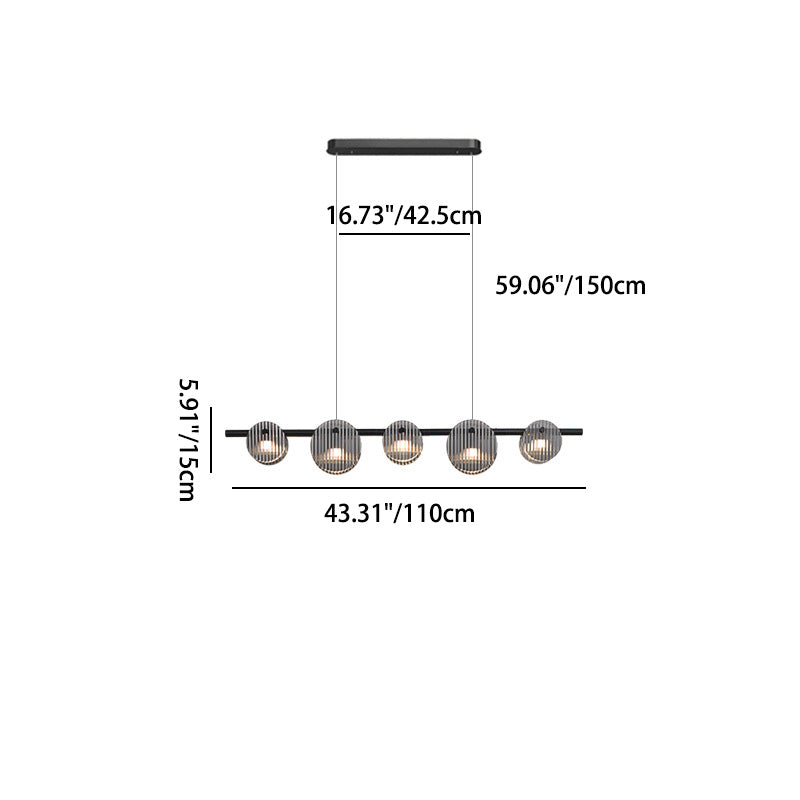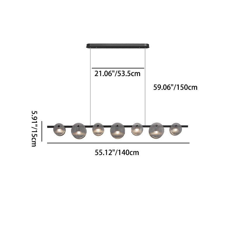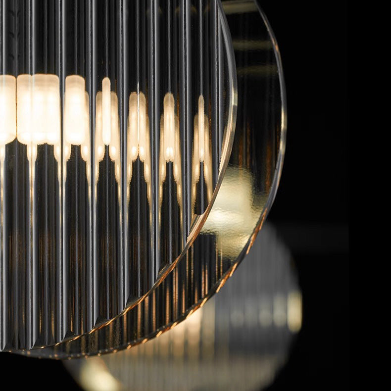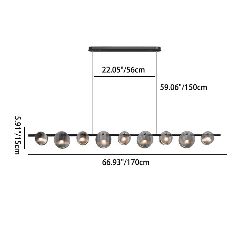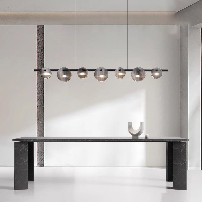 Modern Minimalist Stainless Steel Vertical Grain Glass Disc LED Island Light Chandelier For Entertainment Room