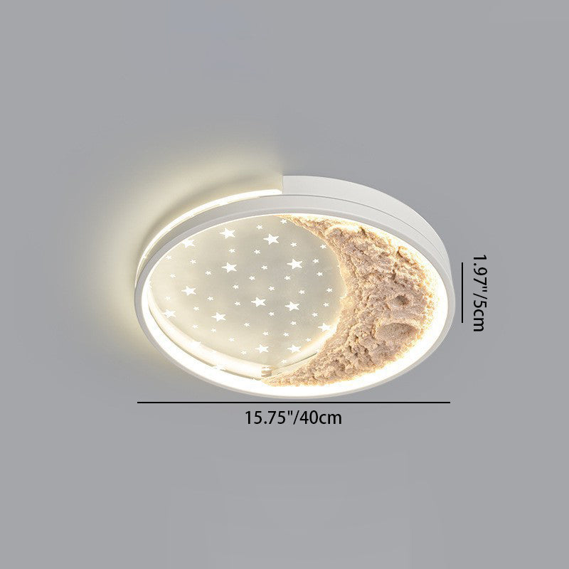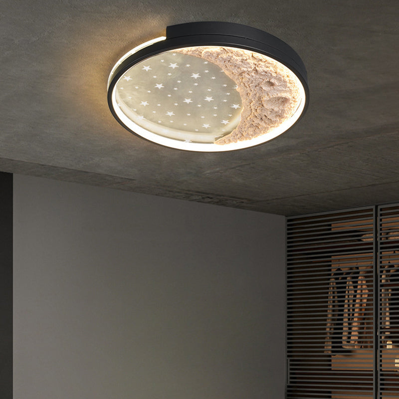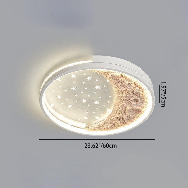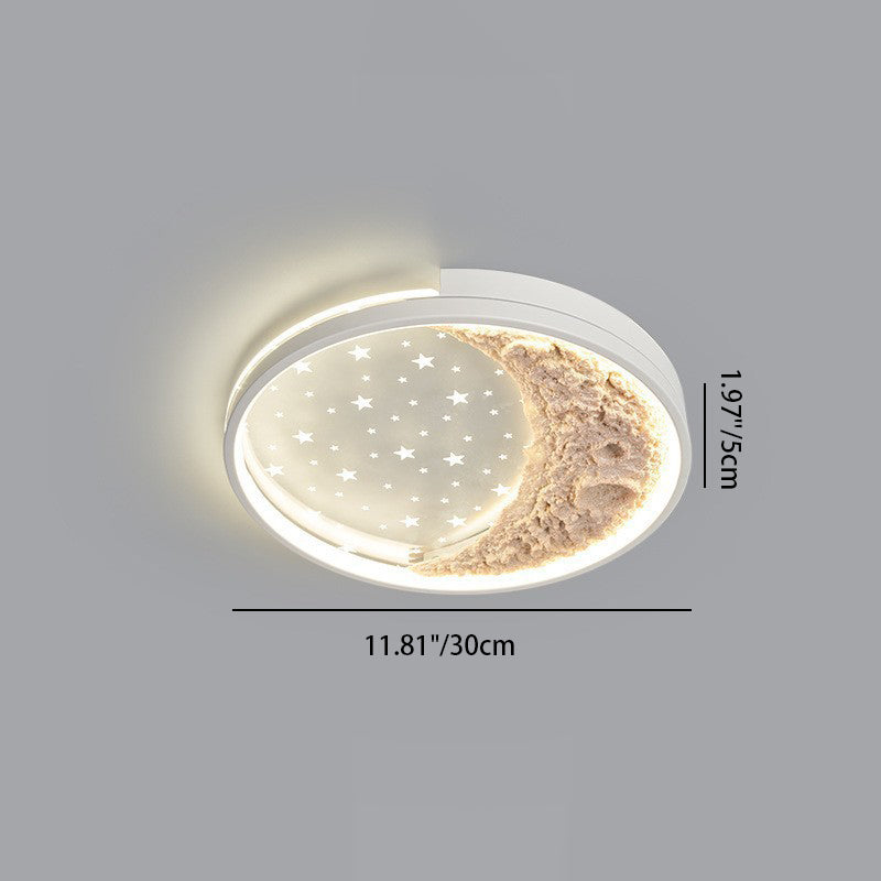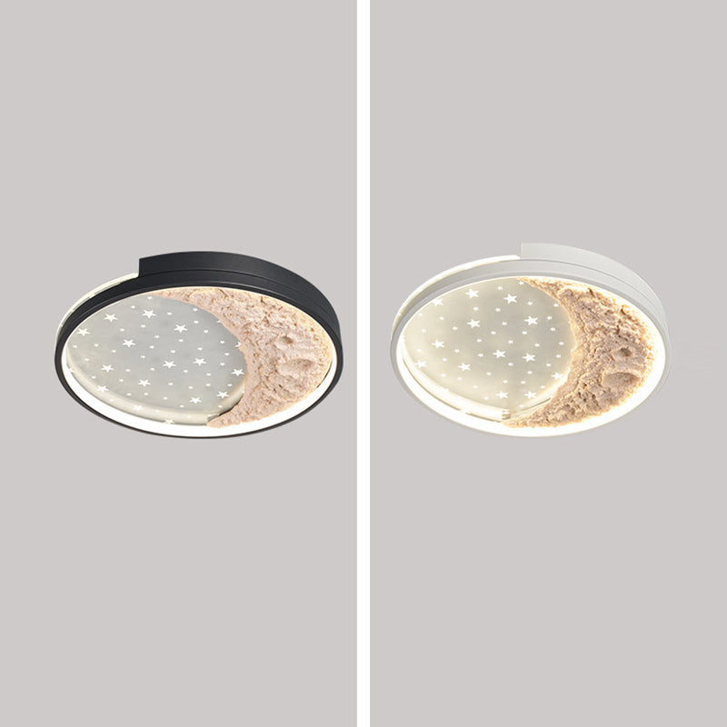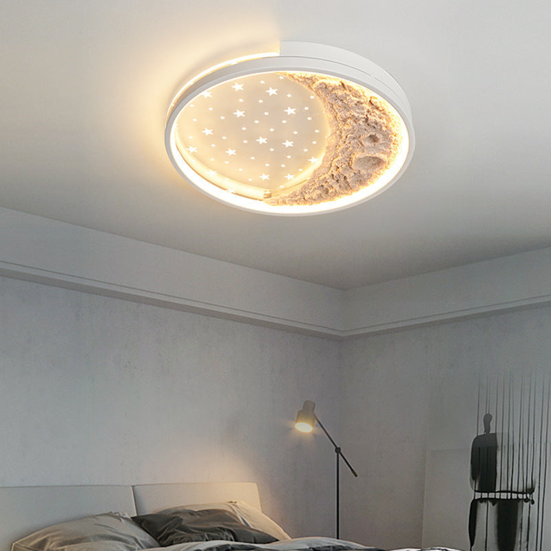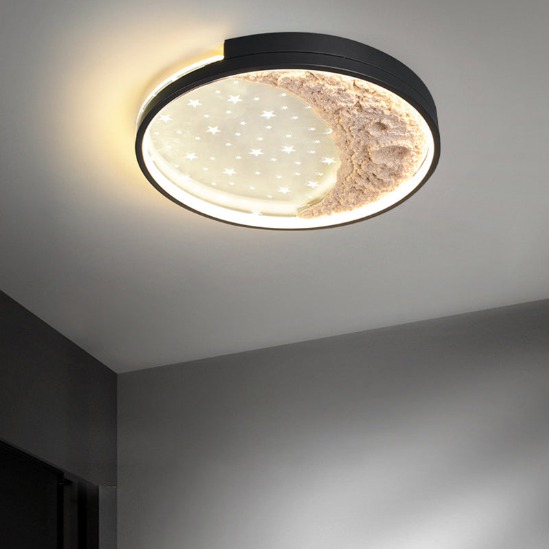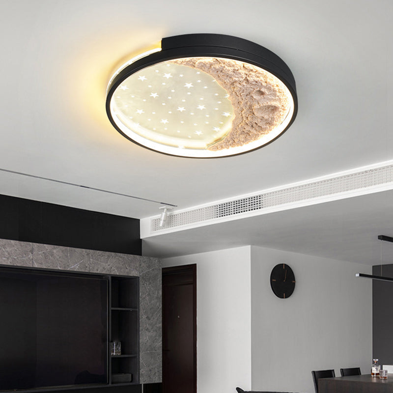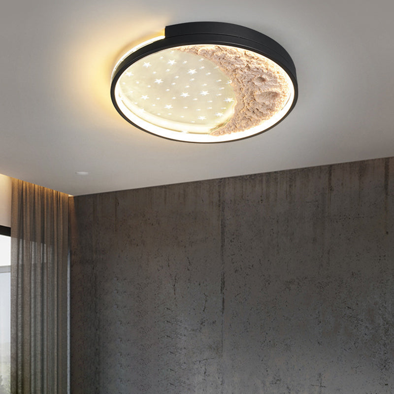 Modern Minimalist Star Moon Round Dome Iron Acrylic LED Flush Mount Ceiling Light For Bedroom