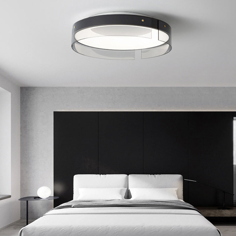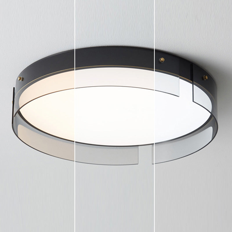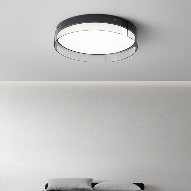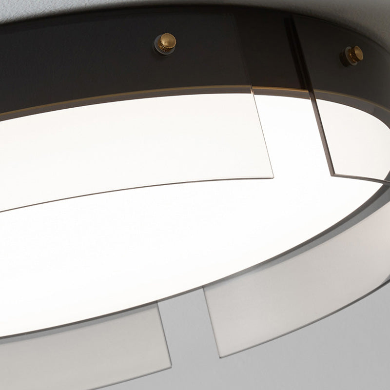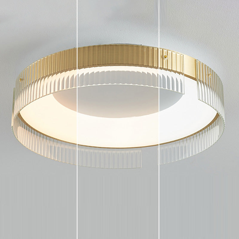 Modern Minimalist Stripe Round Iron Copper Glass Acrylic LED Flush Mount Ceiling Light For Living Room