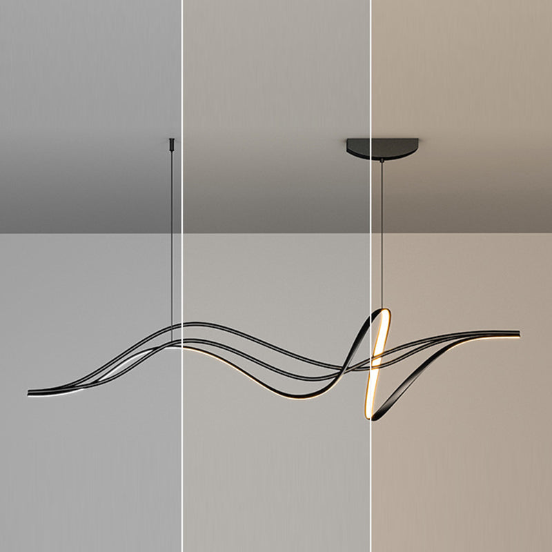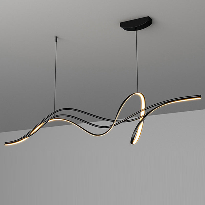 Modern Minimalist Willow Catkin Linear Strip Iron Silicone LED Chandeliers Island Light For Dining Room