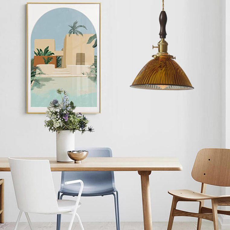Modern Retro Solid Color Brass Glass Iron 1-Light Pendant Light