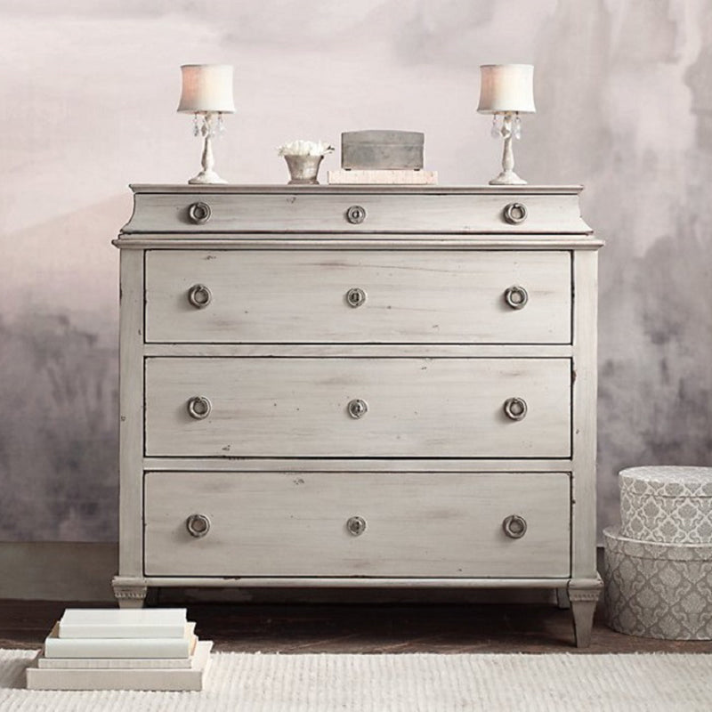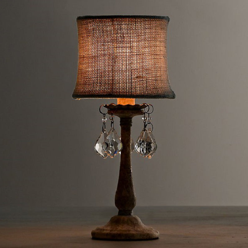 Modern Shabby Chic Distressed White Cylindrical Fabric Shade Resin Base 1-Light Table Lamp For Bedroom