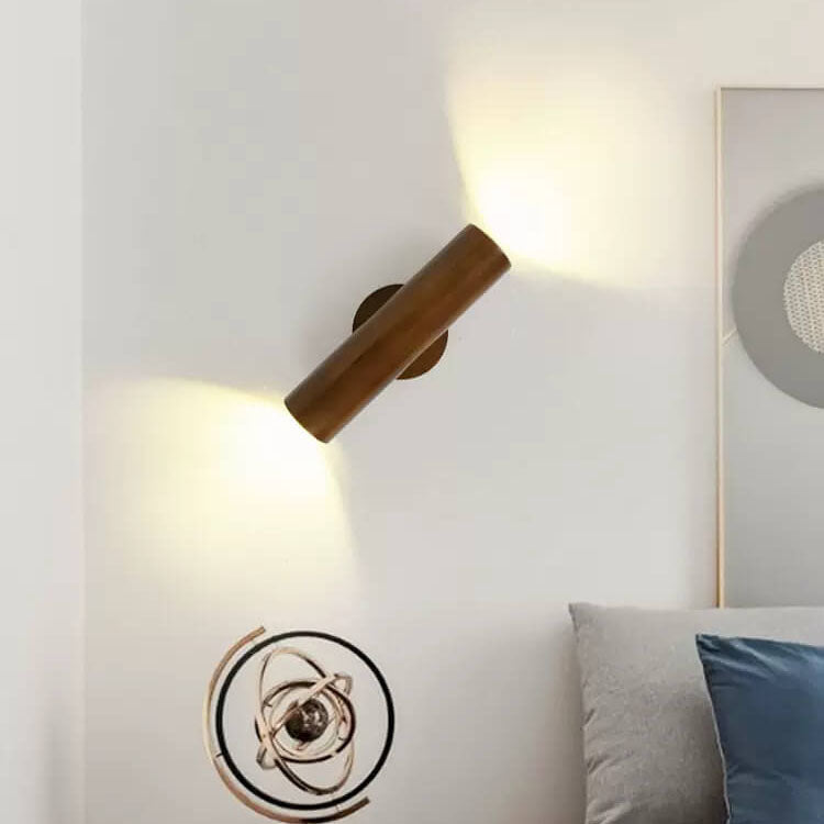 Modern Simple Warm Solid Wood Strip Double Head LED Wall Sconce Lamp