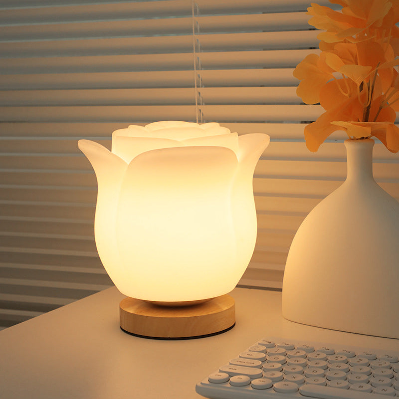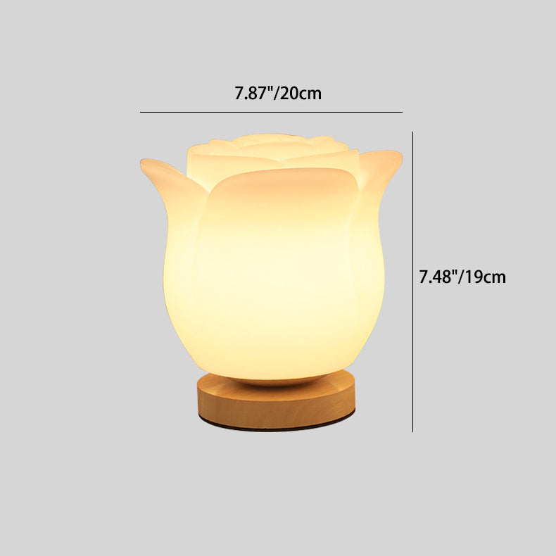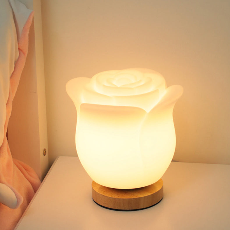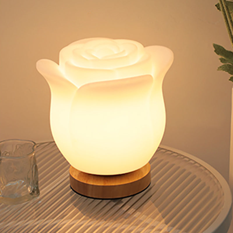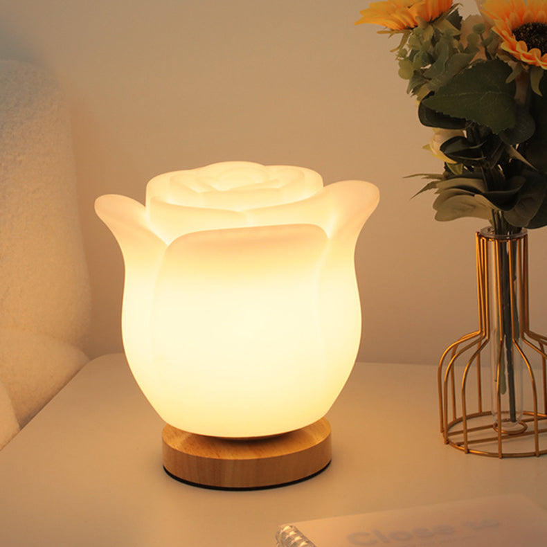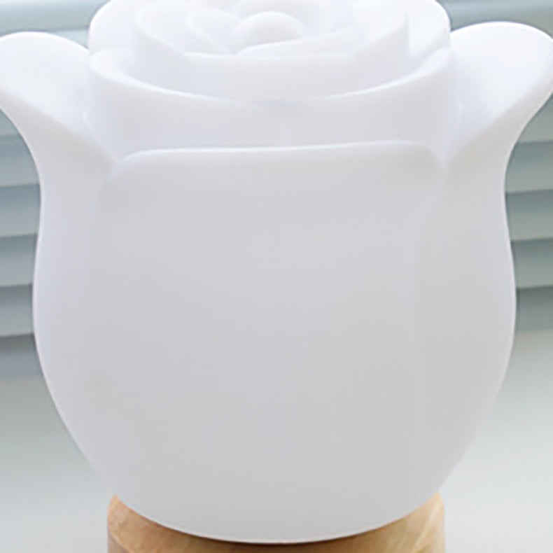 Modern Simplicity Flower Polyethylene Wooden LED Table Lamp For Bedroom