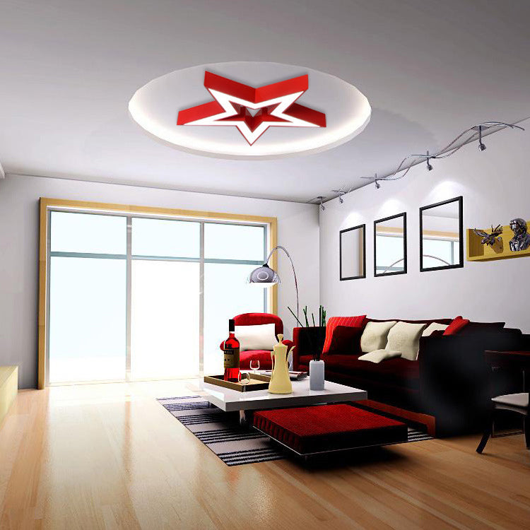 Modern Simplicity Pentagram Skeleton Acrylic Iron LED Flush Mount Ceiling Fan Light For Bedroom