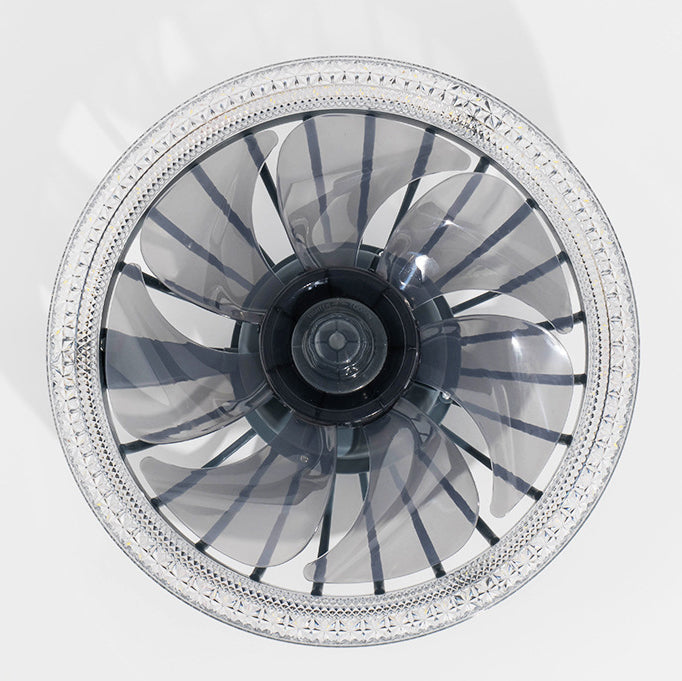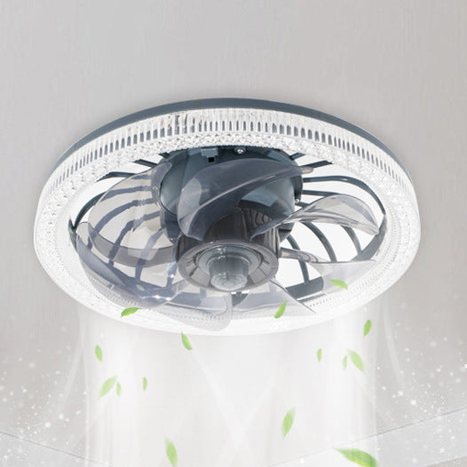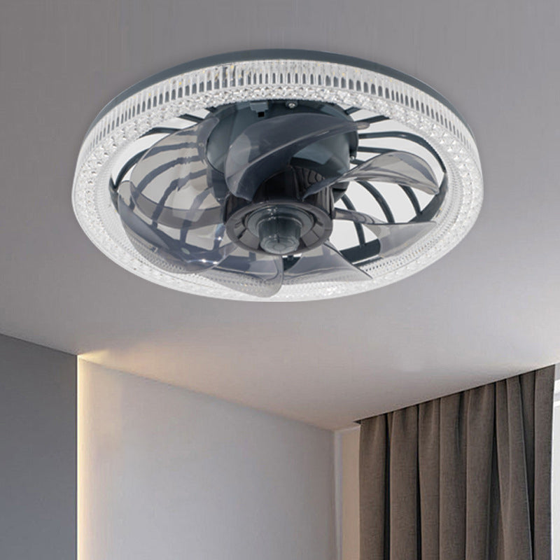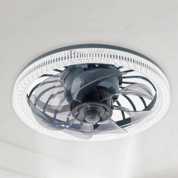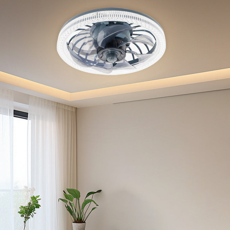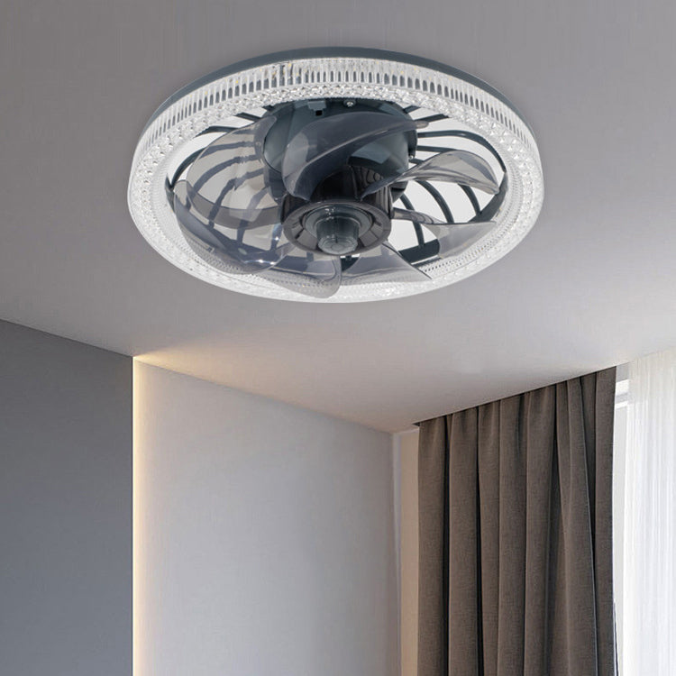 Modern Simplicity PP PS Imitation Crystal Round LED Flush Mount Ceiling Fan Light For Bedroom