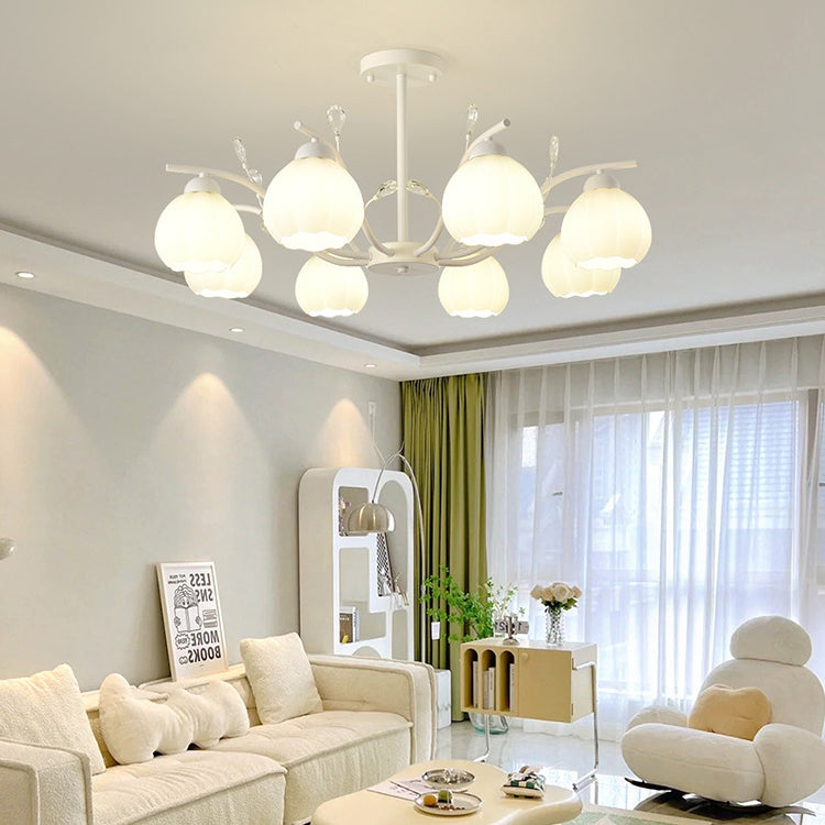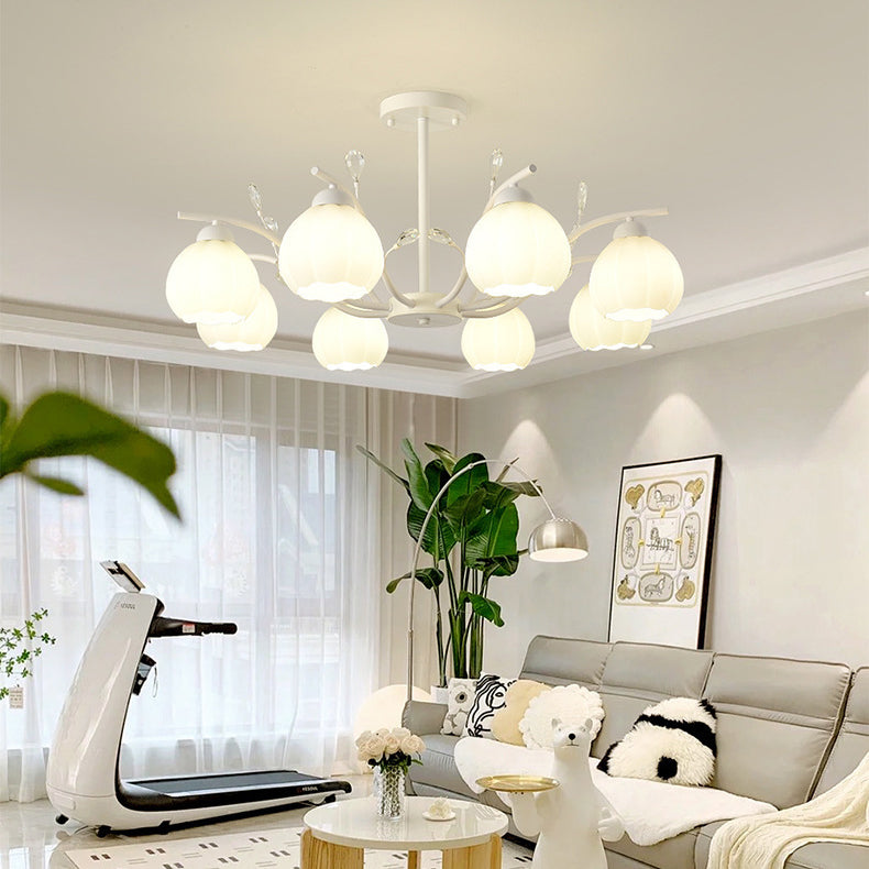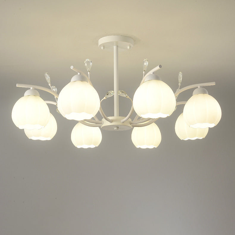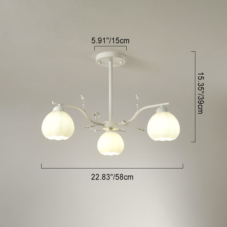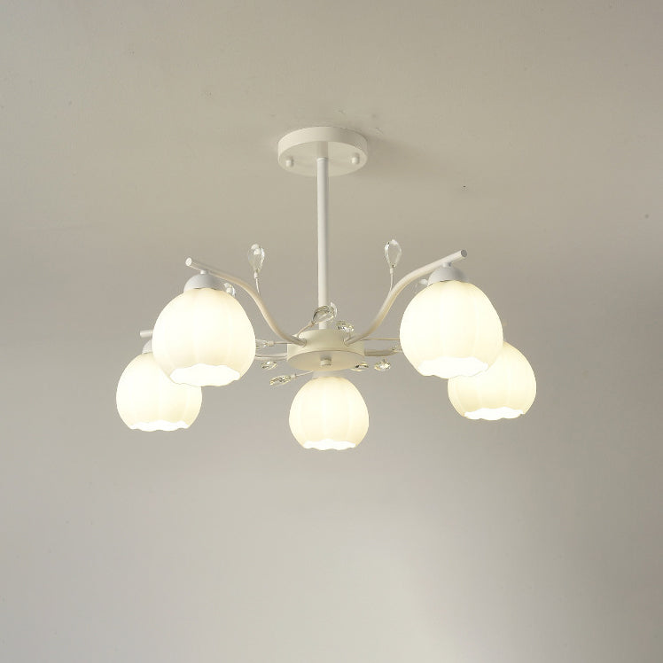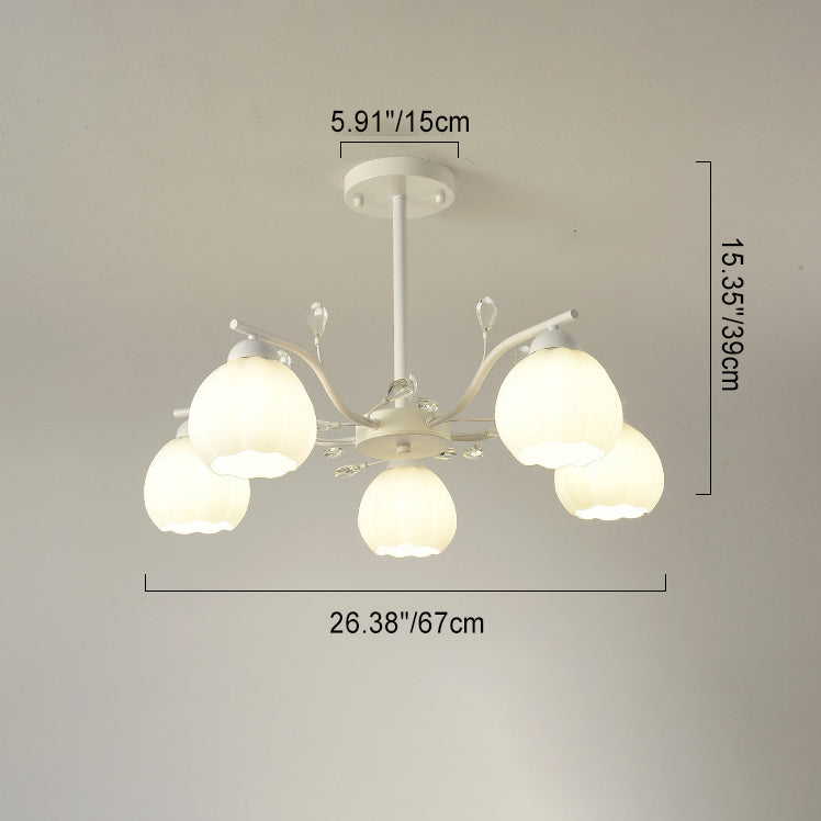Modern Simplicity Pumpkin Branch Pendant Glass Crystal Iron 3/5/8 Light Chandelier For Living Room