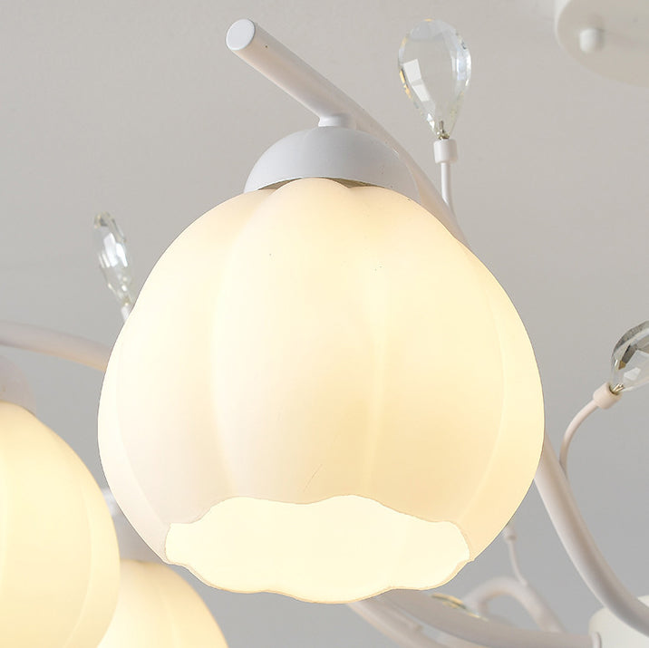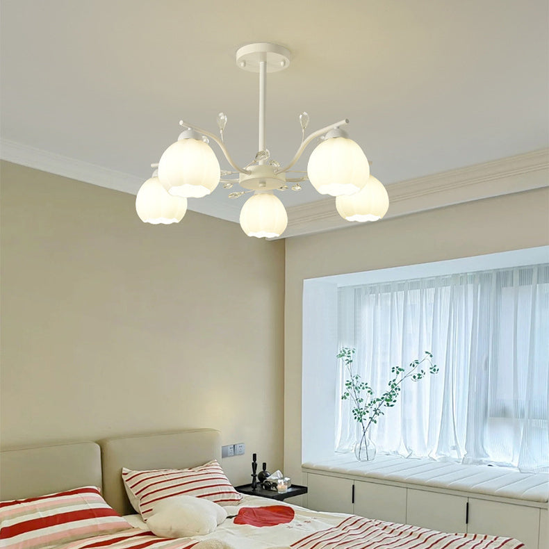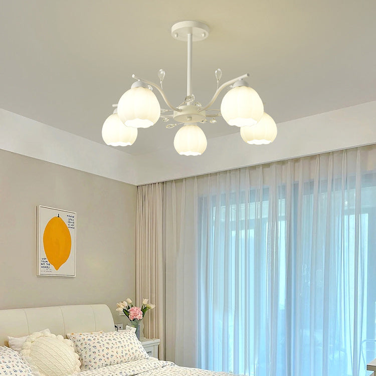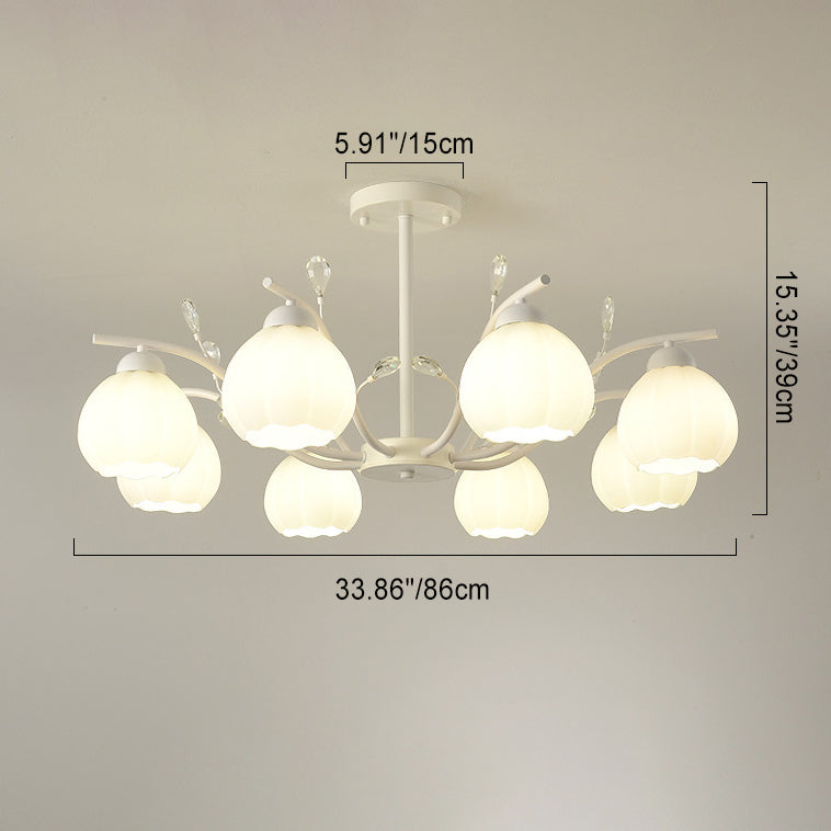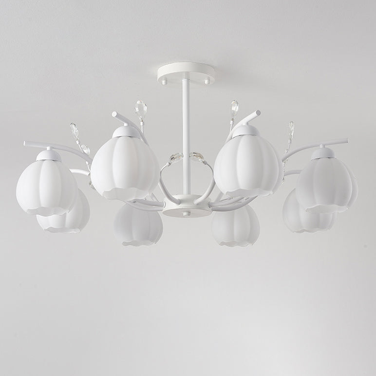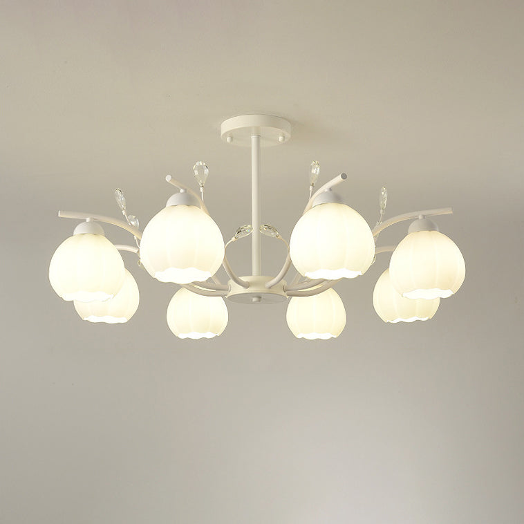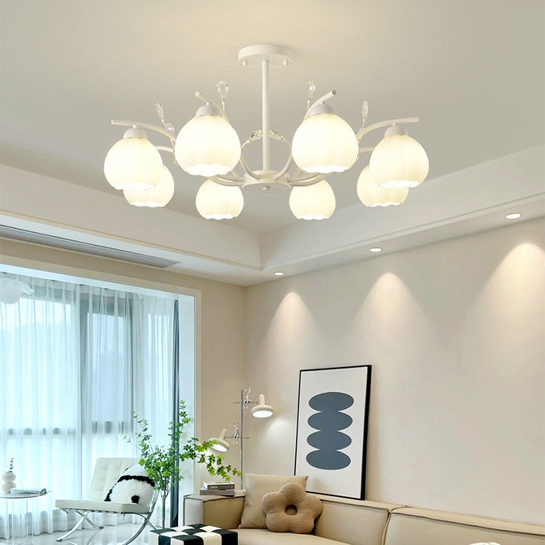 Modern Simplicity Pumpkin Branch Pendant Glass Crystal Iron 3/5/8 Light Chandelier For Living Room