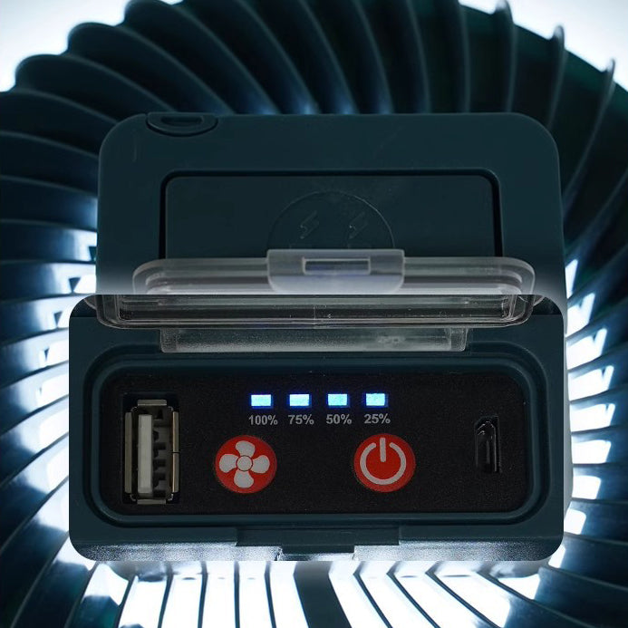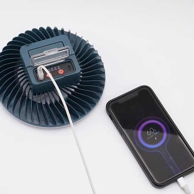 Modern Simplicity Rechargeable Waterproof ABS Round Magnetic Camping Hanging LED Outdoor Fan Light For Outdoor Patio