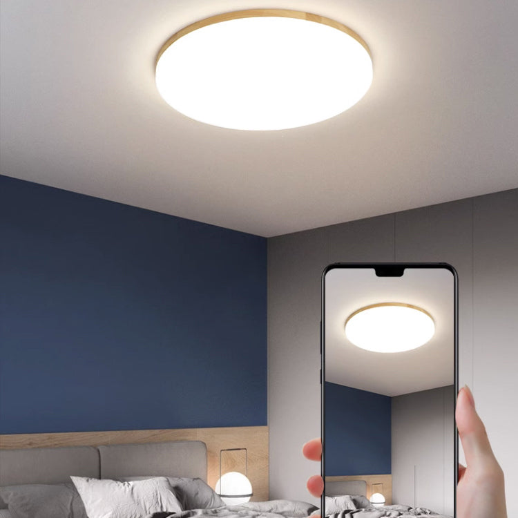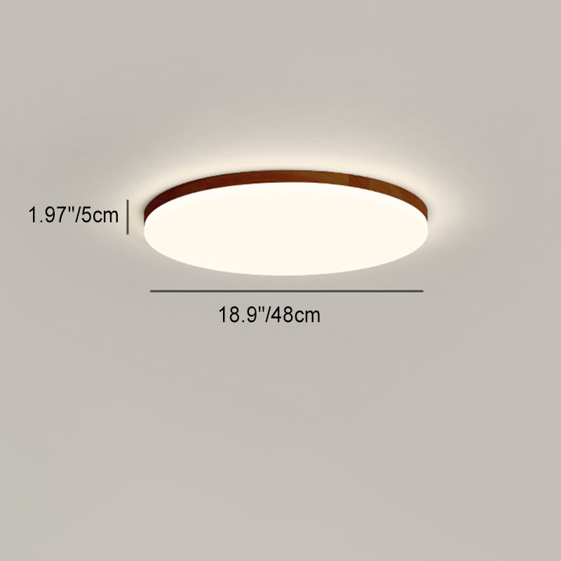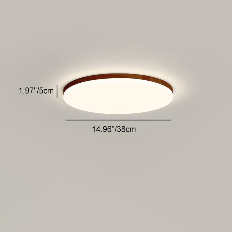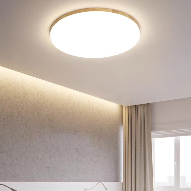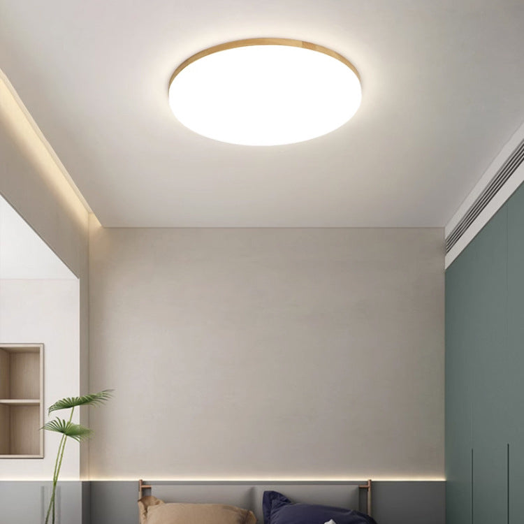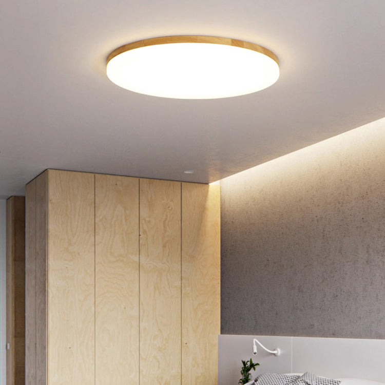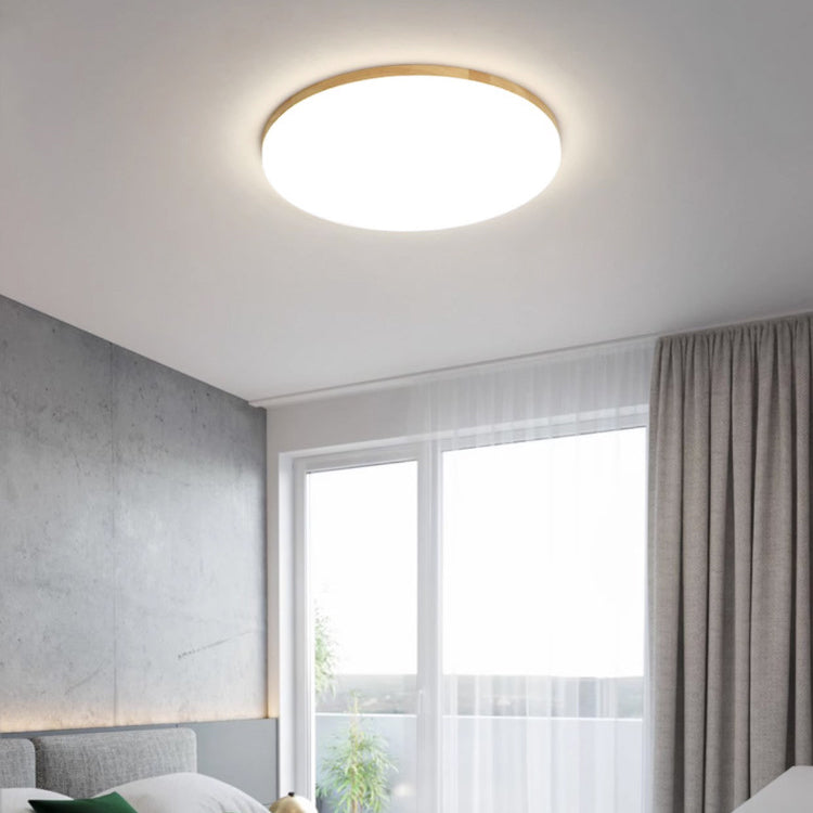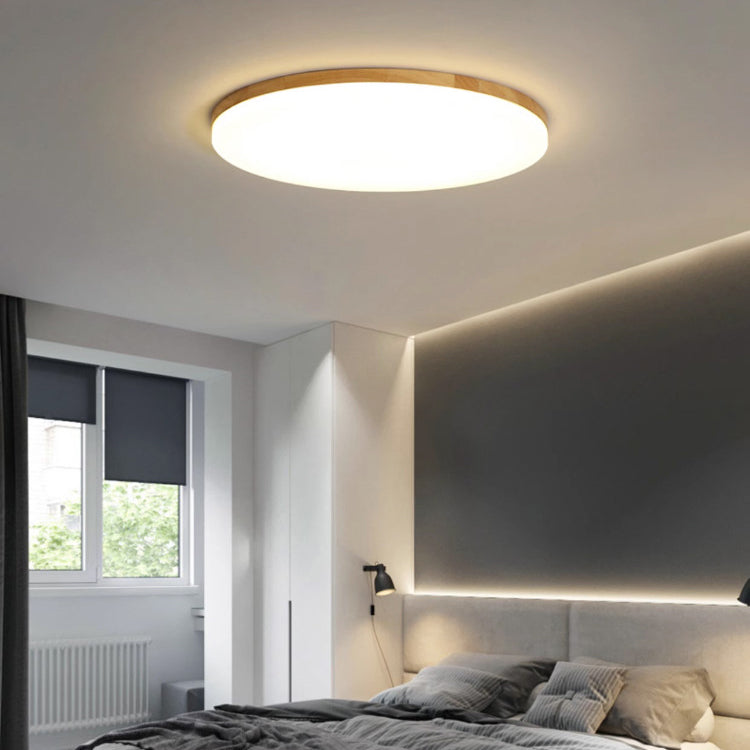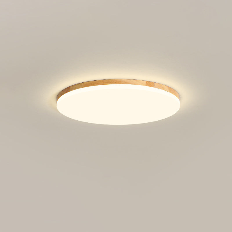 Modern Simplicity Round Acrylic Wood Edge LED Flush Mount Ceiling Light For Bedroom