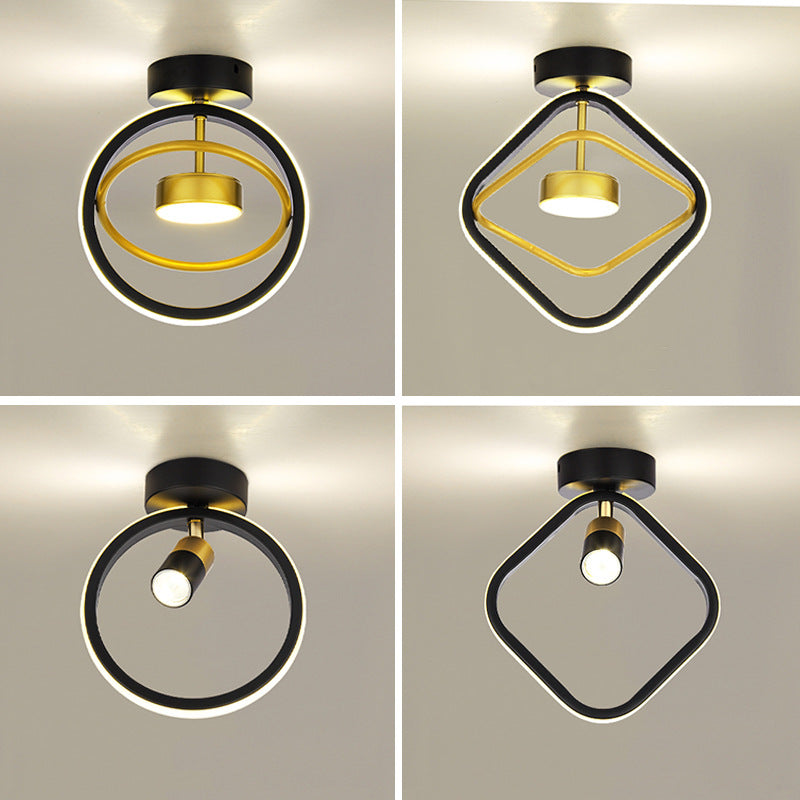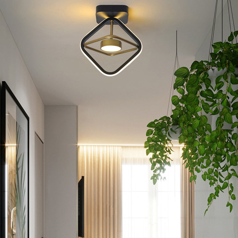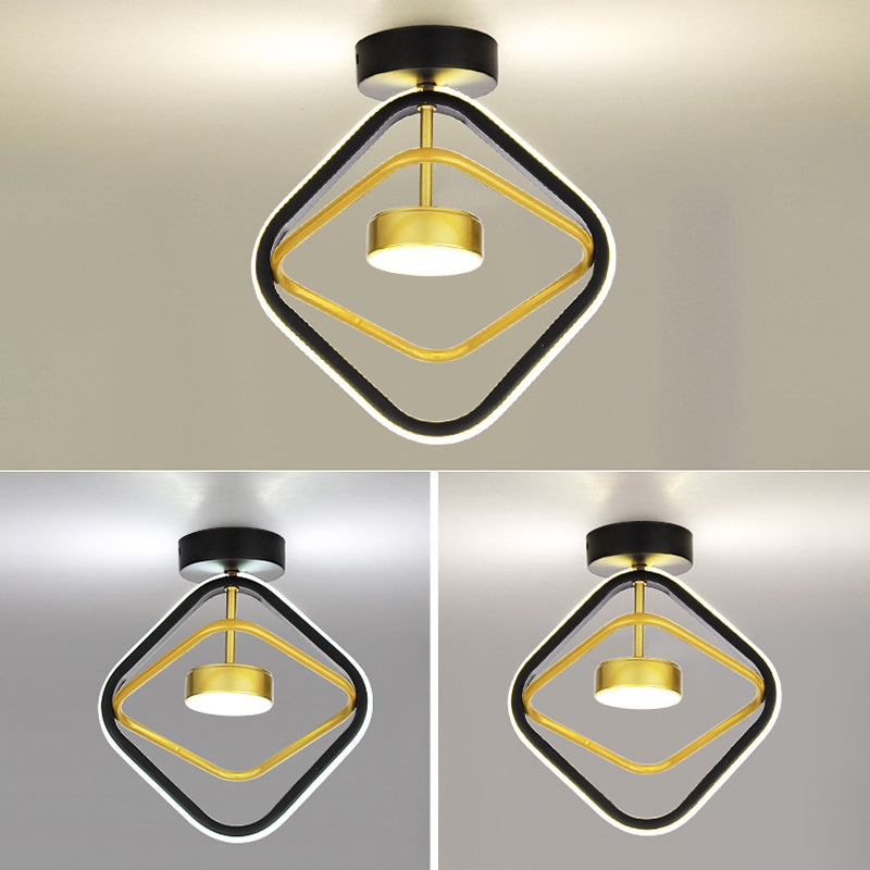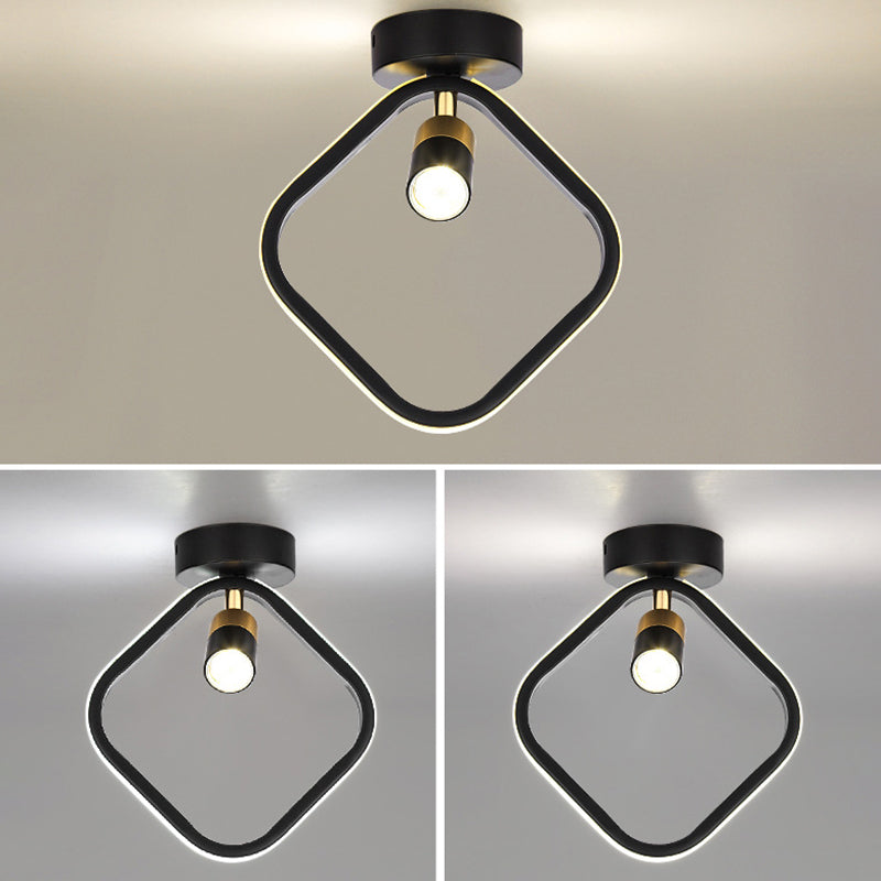Modern Simplicity Square Round Silicone Iron LED Semi-Flush Mount Ceiling Light For Living Room