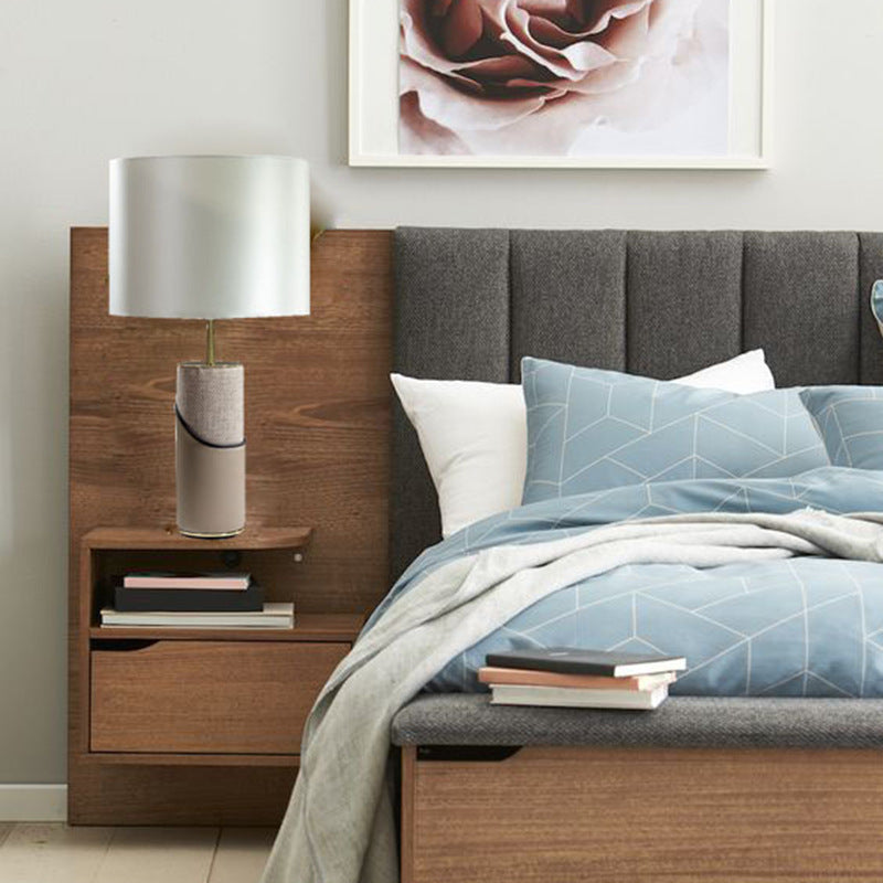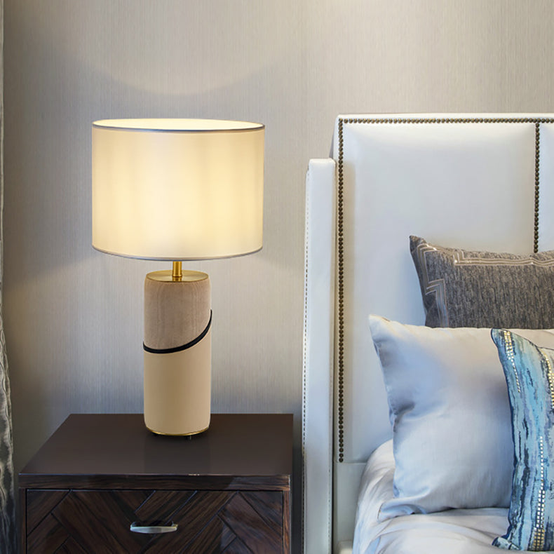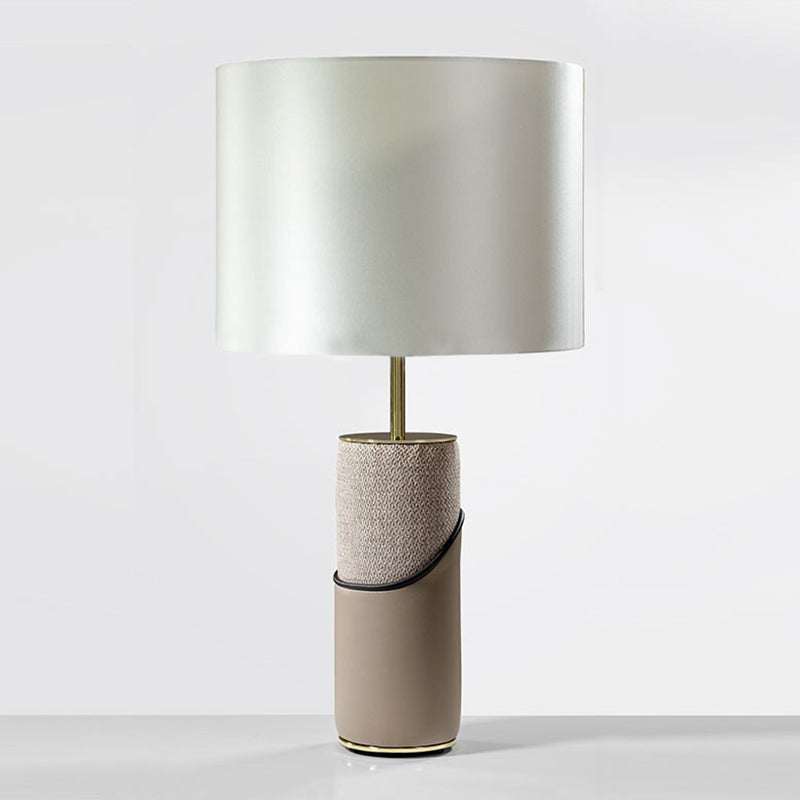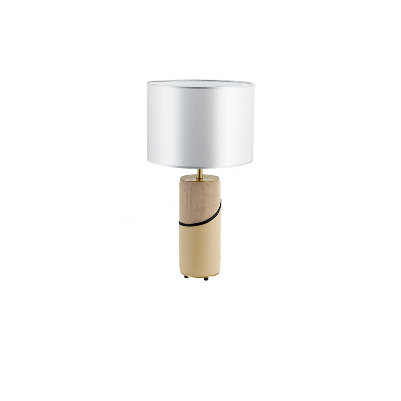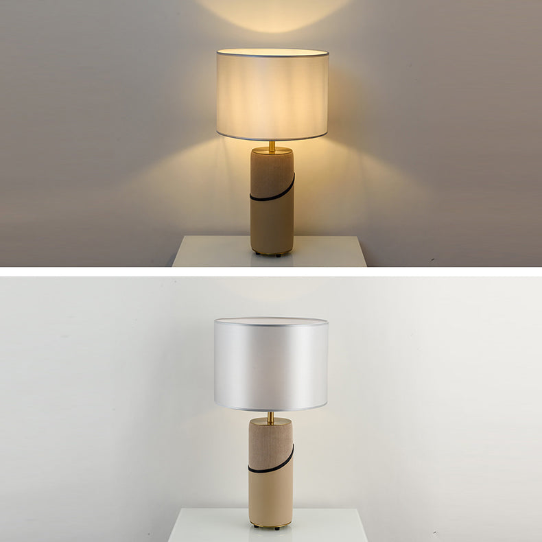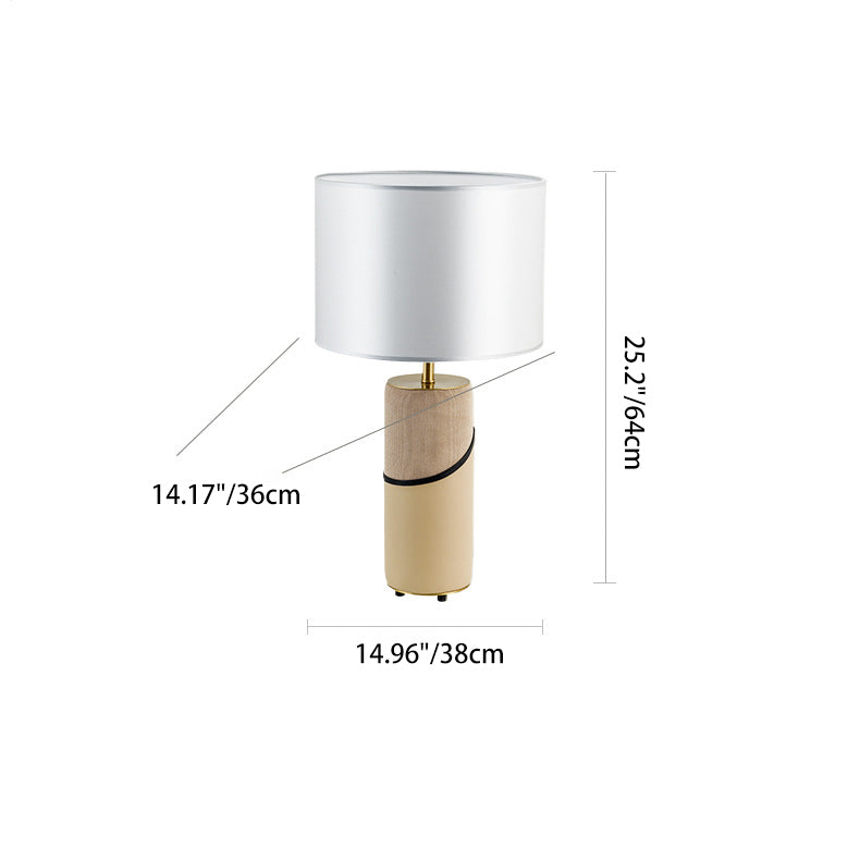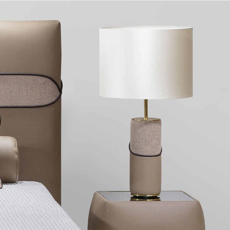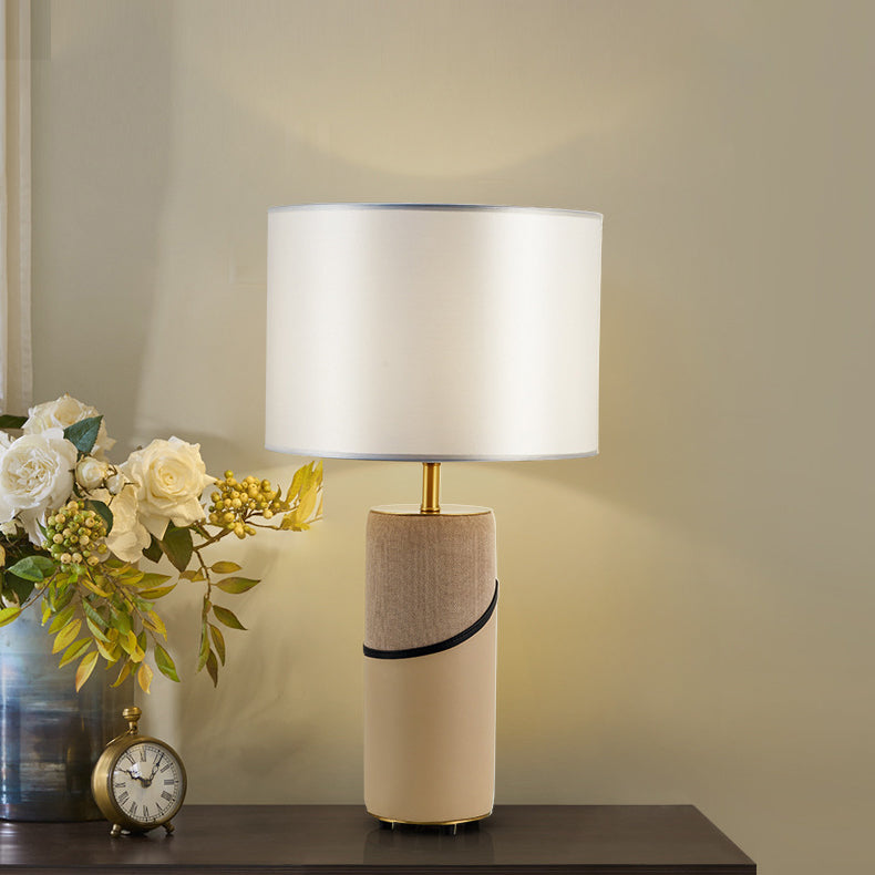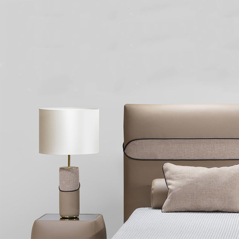 Modern Transitional Fabric Shade Leather Cylinder Base 1-Light Table Lamp For Bedroom