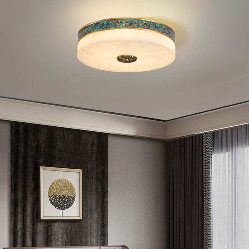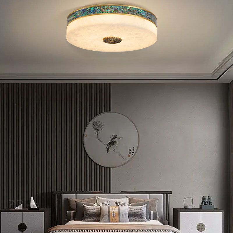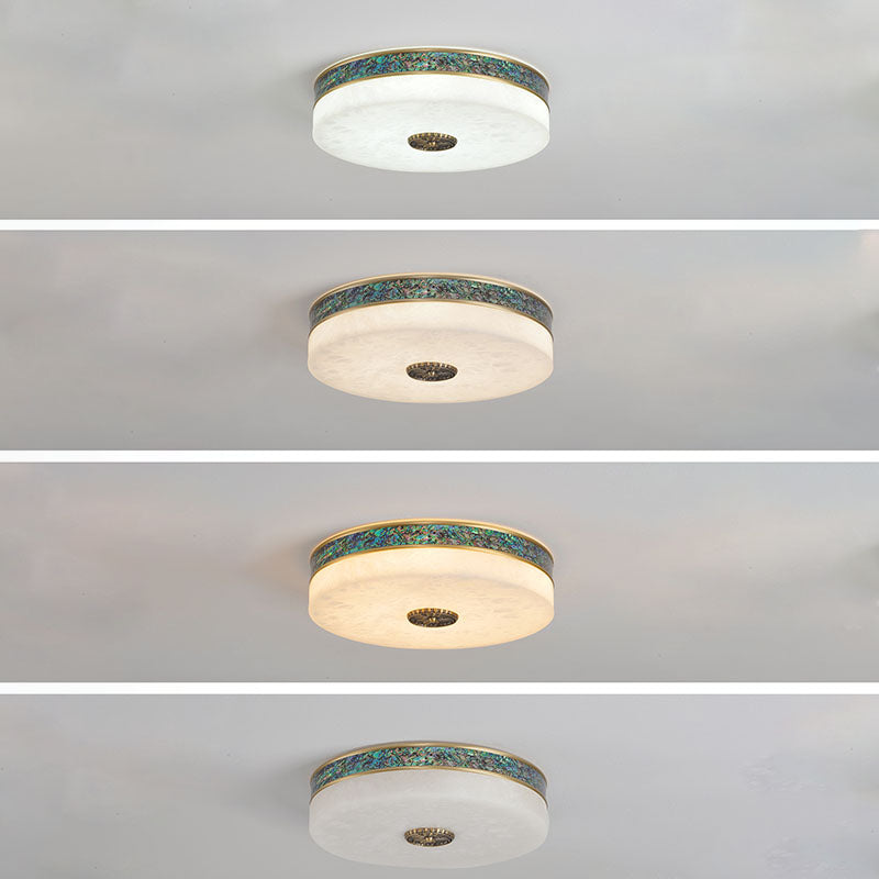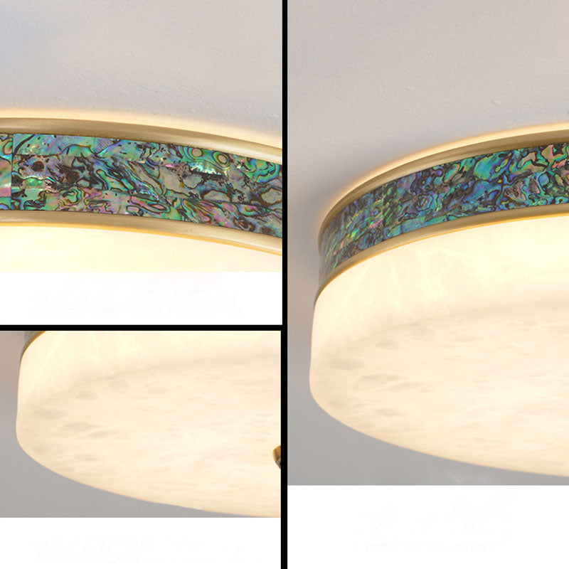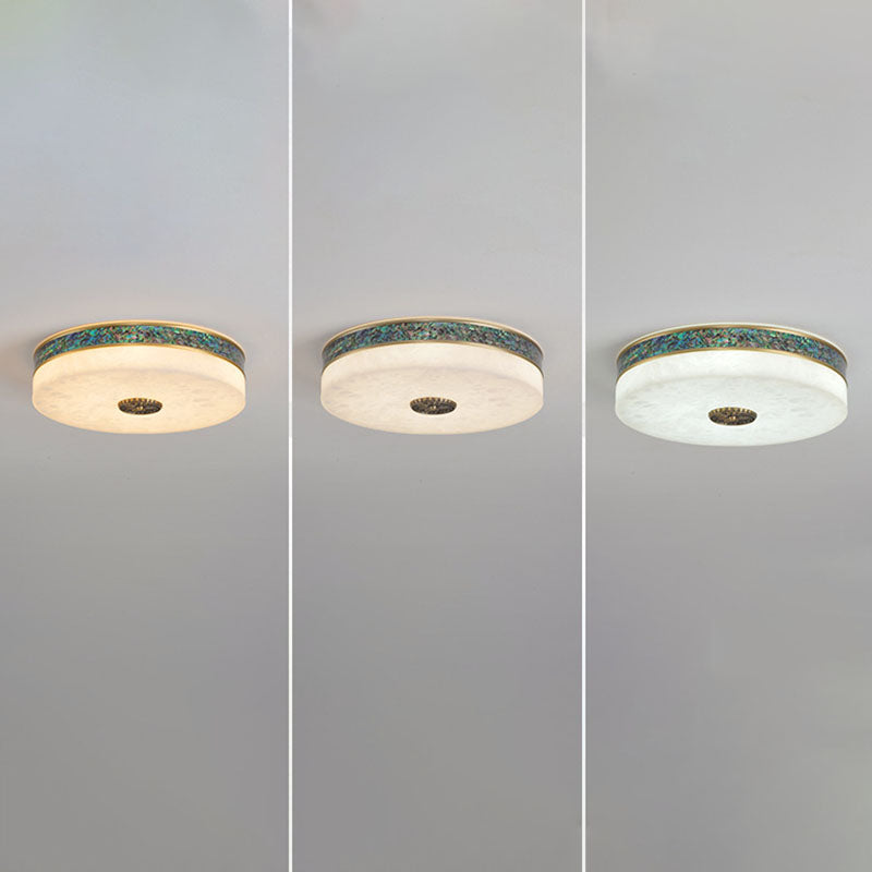 Modern Transitional Round All Copper Marble LED Flush Mount Ceiling Light For Bedroom