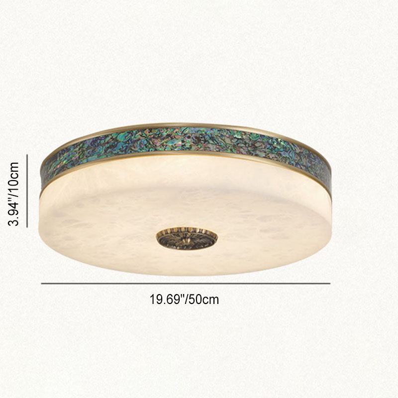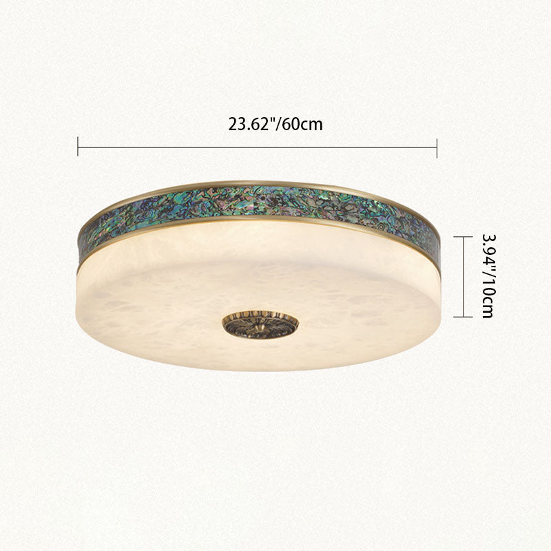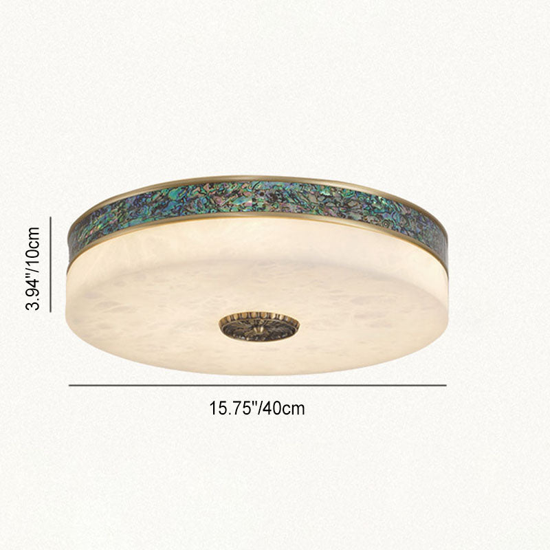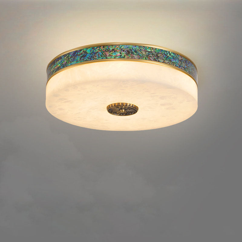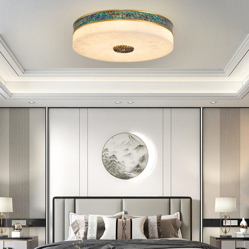 Modern Transitional Round All Copper Marble LED Flush Mount Ceiling Light For Bedroom