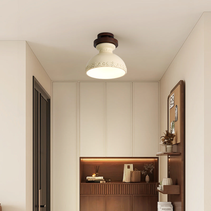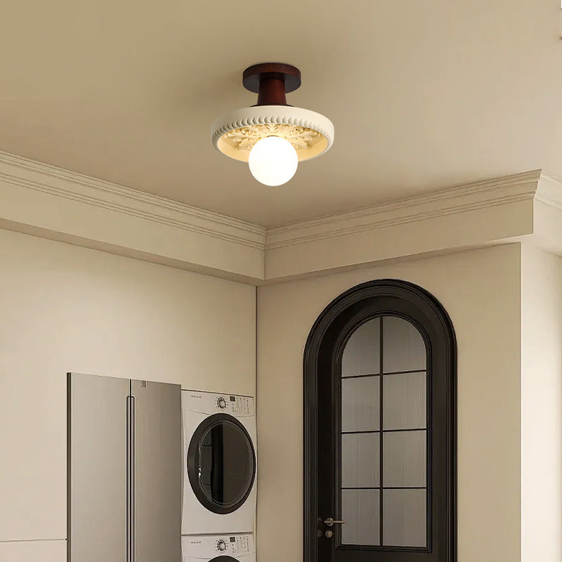 Modern Transitional Solid Wood Semicircle Carving Resin Shade 1-Light Semi-Flush Mount Ceiling Light For Living Room