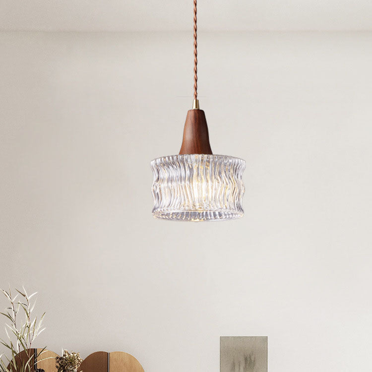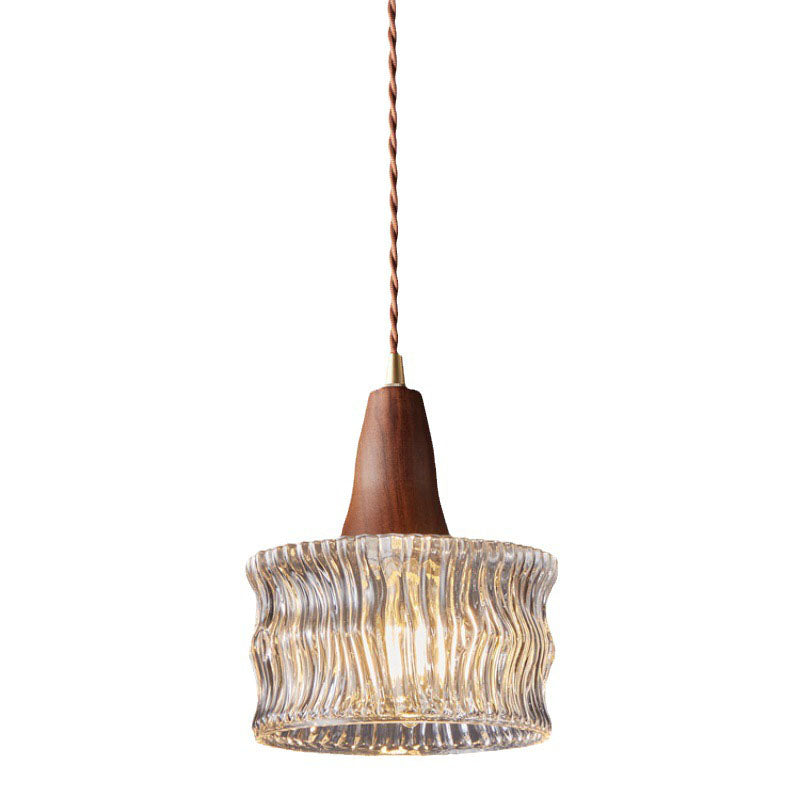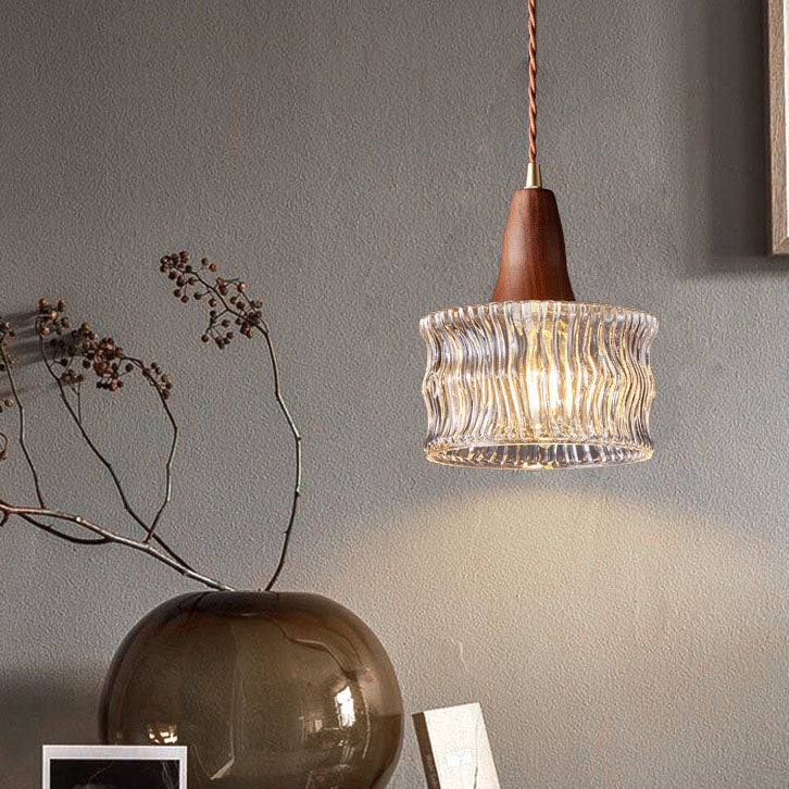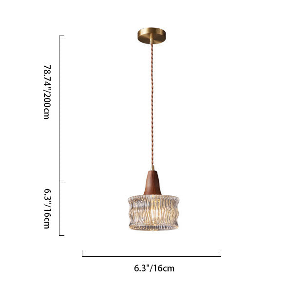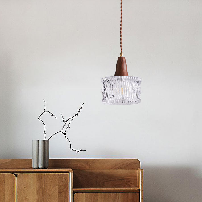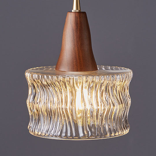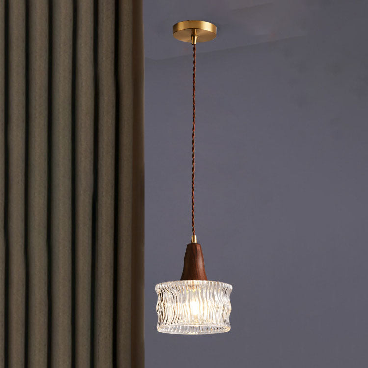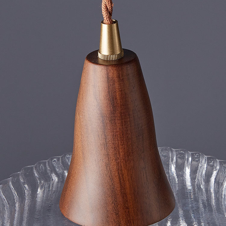 Modern Transitional Walnut Brass Round Glass Shade 1-Light Pendant Light For Living Room