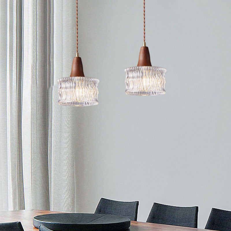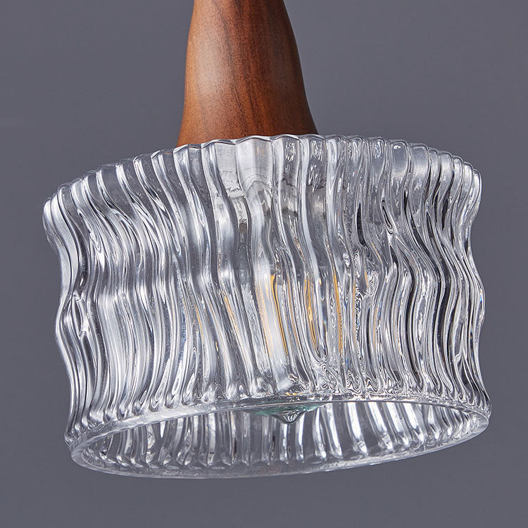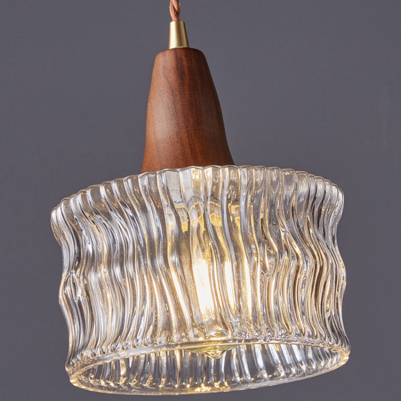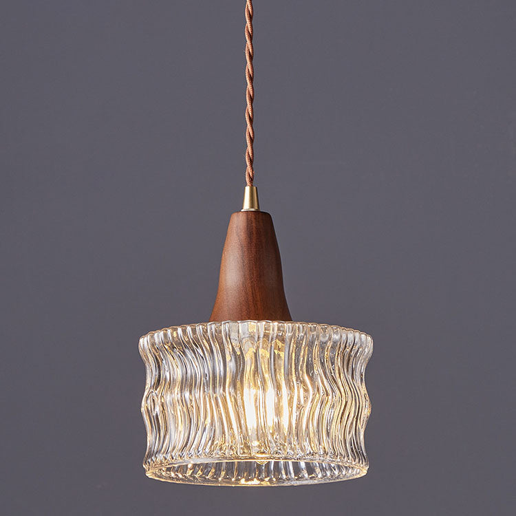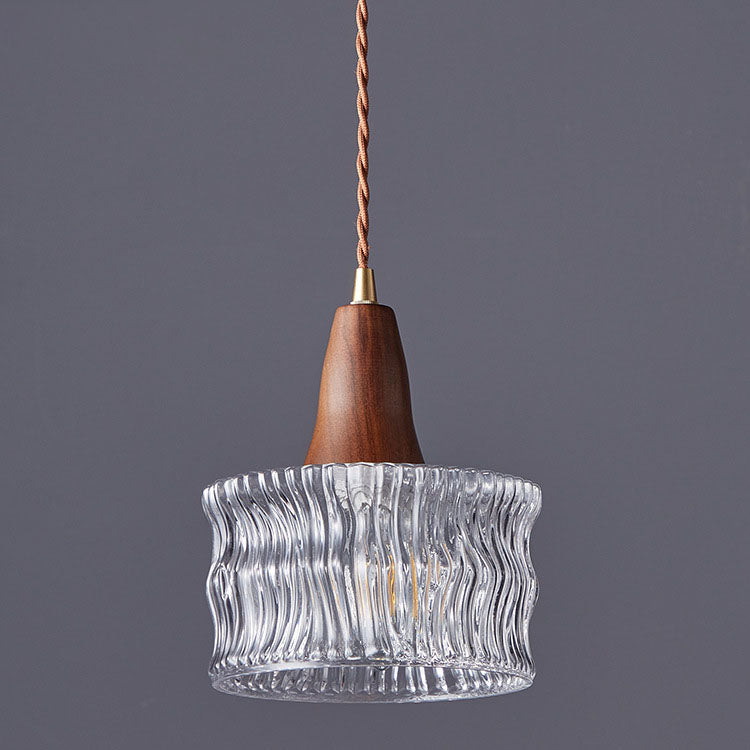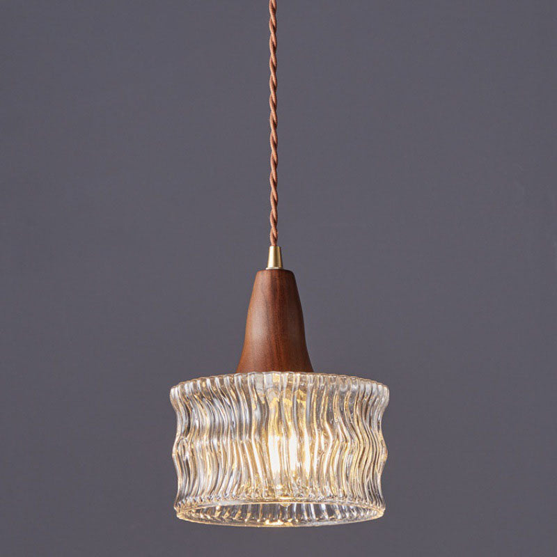 Modern Transitional Walnut Brass Round Glass Shade 1-Light Pendant Light For Living Room