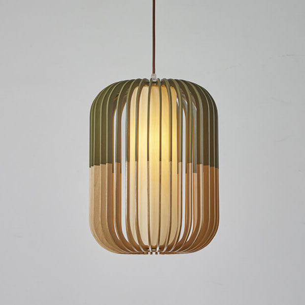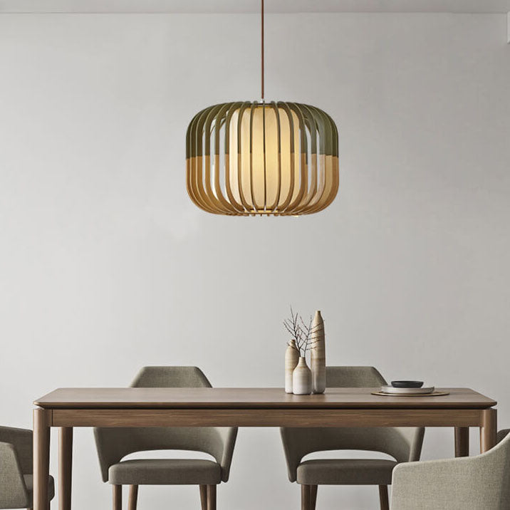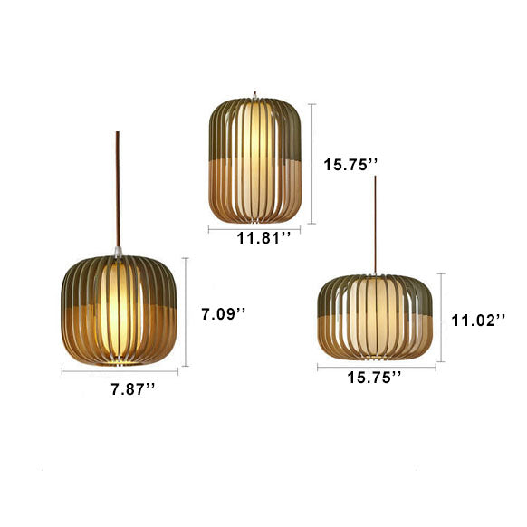 Modern Wooden Cage 1-Light Drum Pendant Light