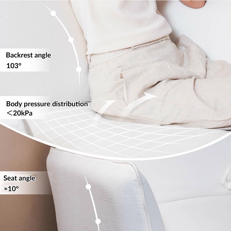 Bring calm and comfort into your space with this modern minimalist accent chair—a soft retreat wrapped in breathable moonlight white cotton-linen and designed for effortless lounging. From the shape to the materials, every element is crafted with purpose and purity.