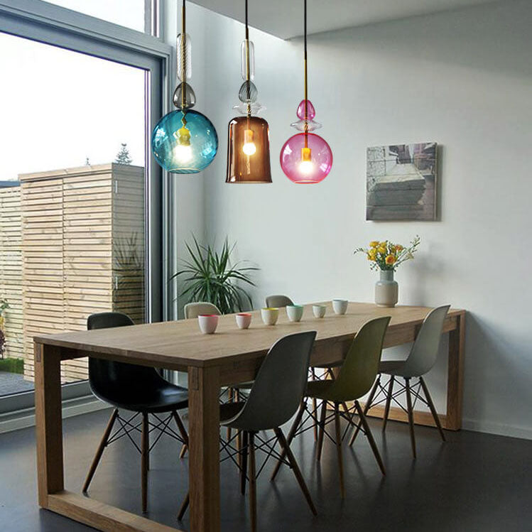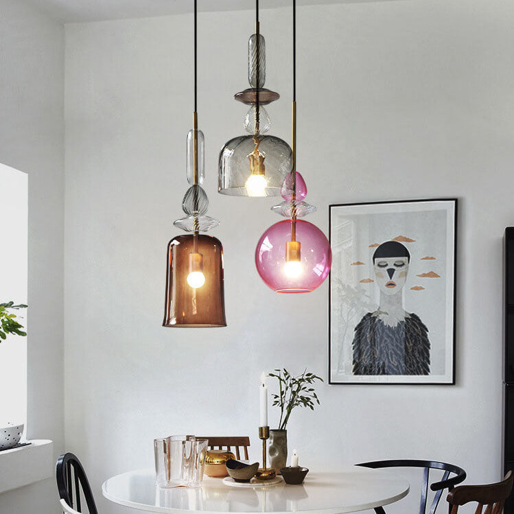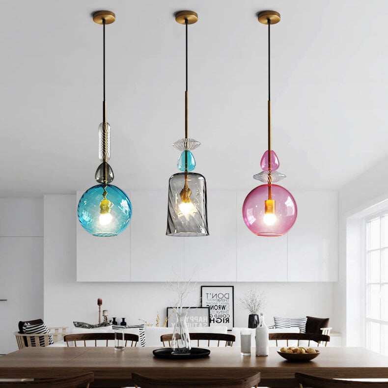 Nordic Colorful Candy Cane Glass 1-Light LED Pendant Light