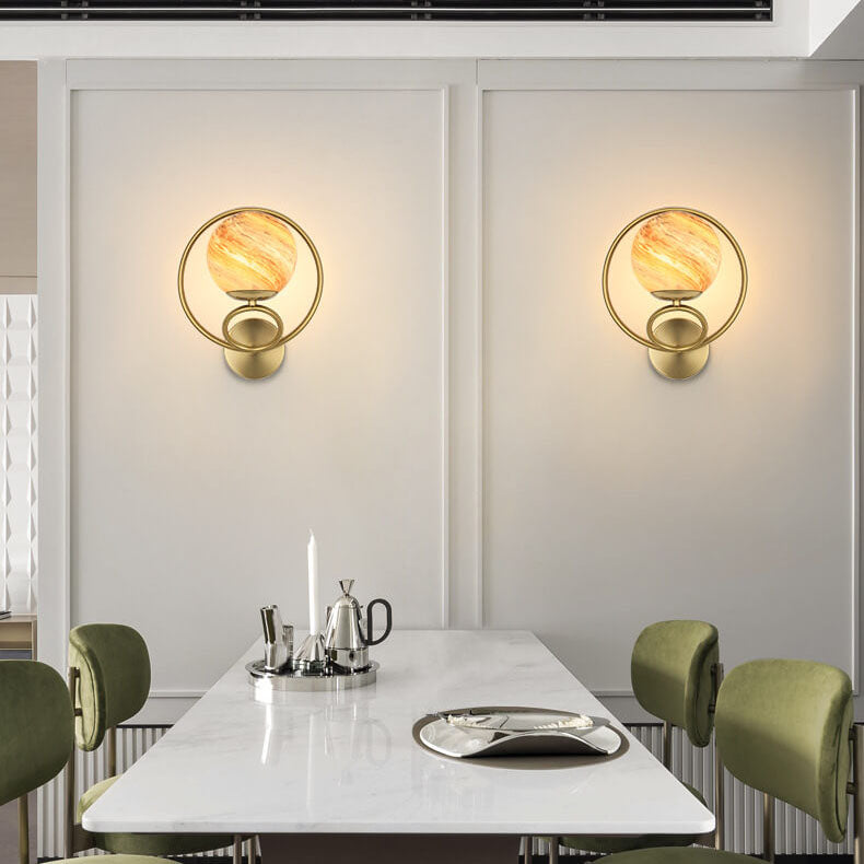 Nordic Creative Circle Planet Glass Iron 1-Light Wall Sconce Lamp