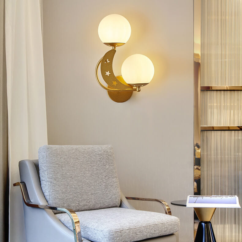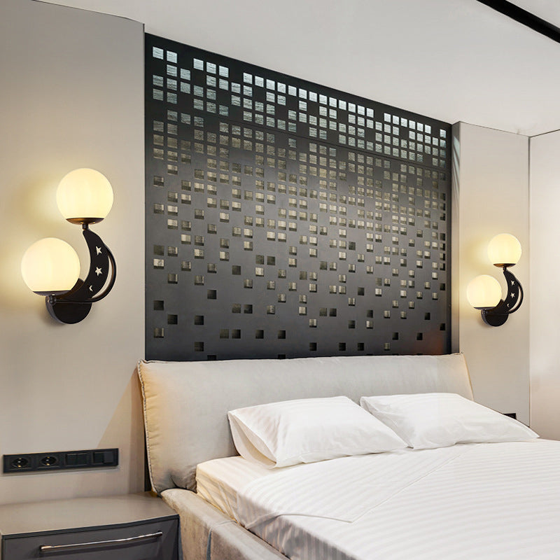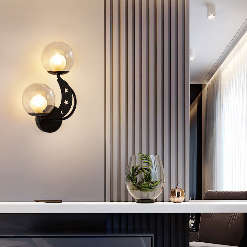 Nordic Creative Glass Globe Lampshade Moon Star Decoration Design 2-Light Wall Sconce Lamp