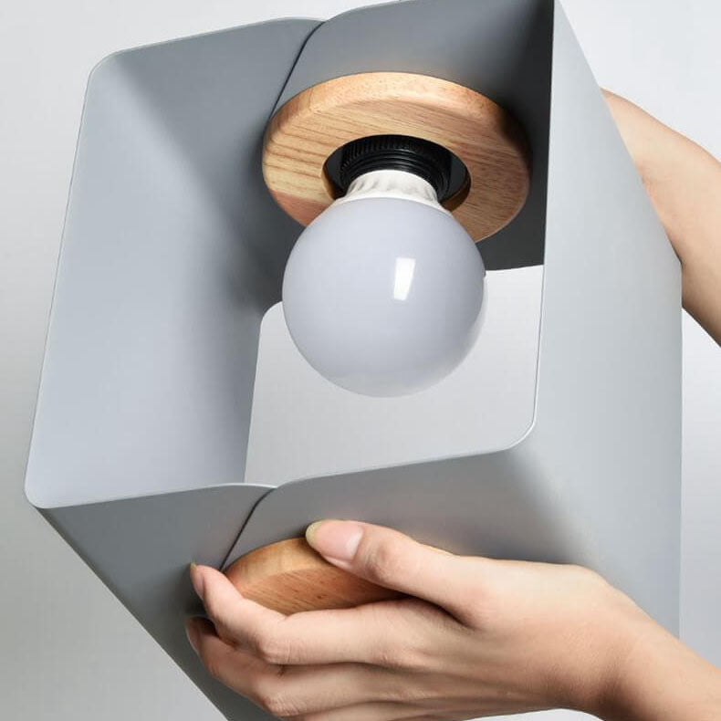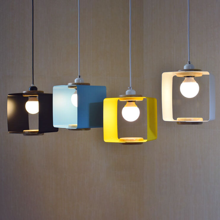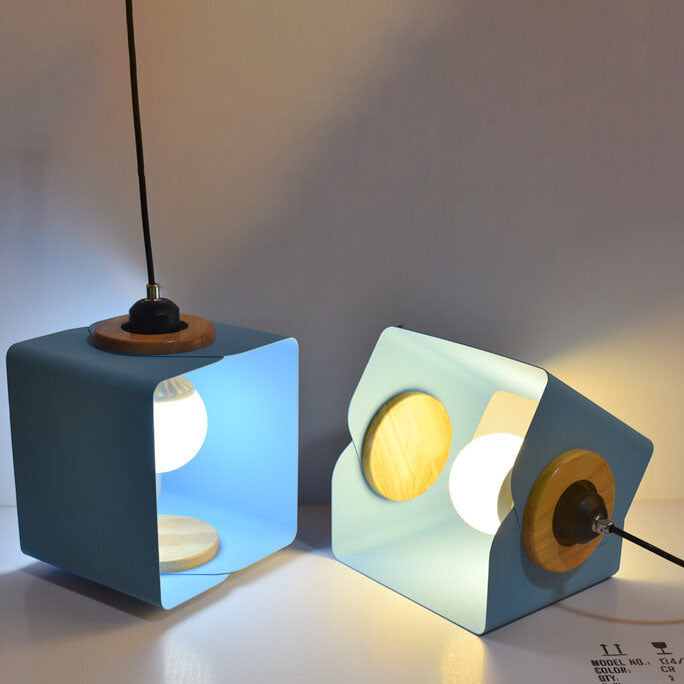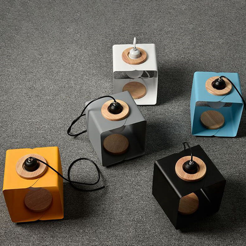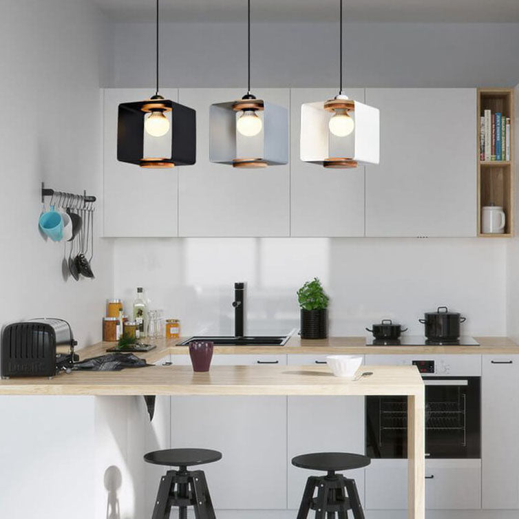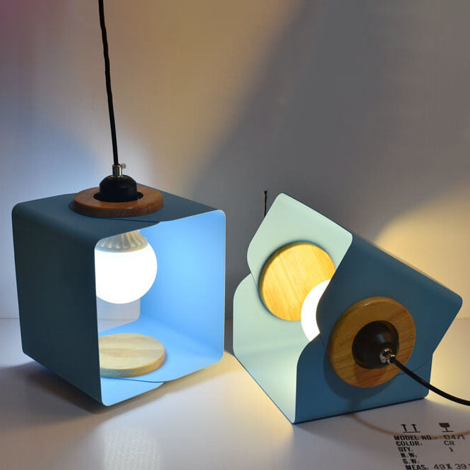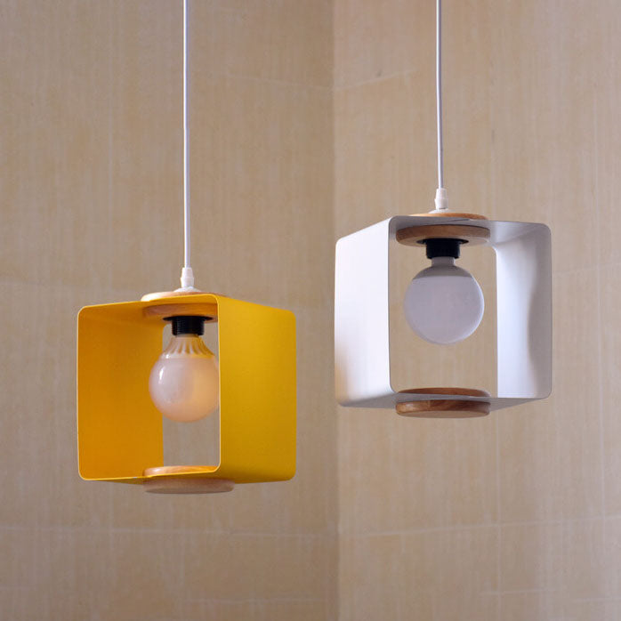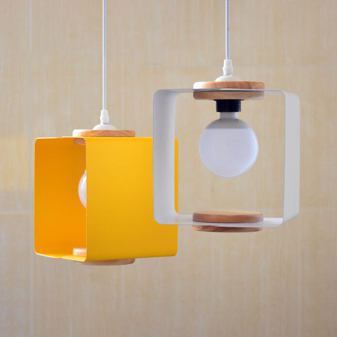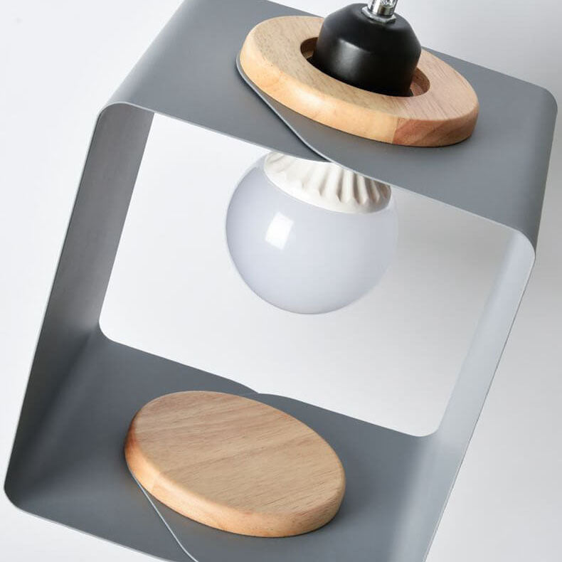 Nordic Creative Iron Solid Wood Square Geometry 1-Light Pendant Light