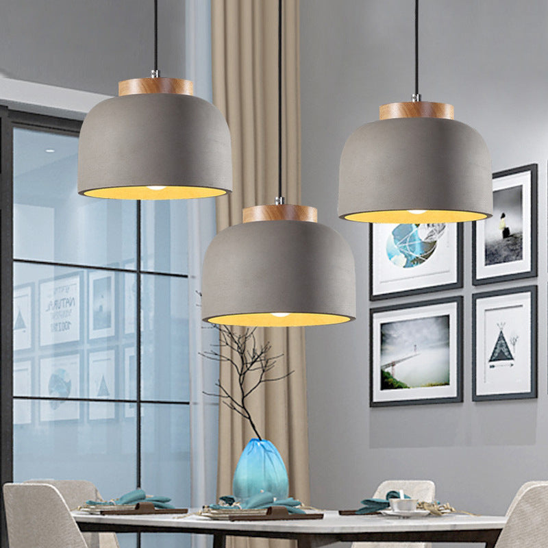 Nordic Creative Solid Wood Cement Dome 1-Light Pendant Light