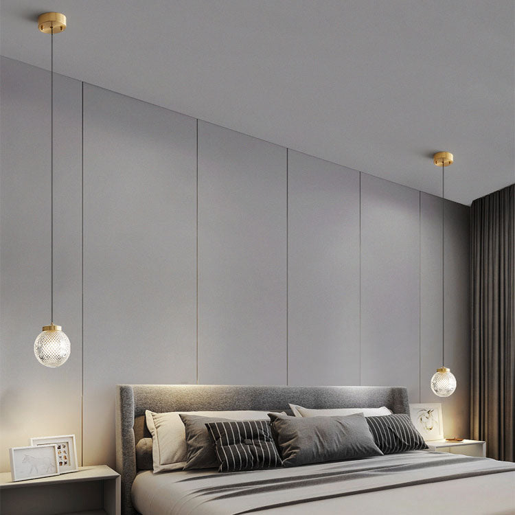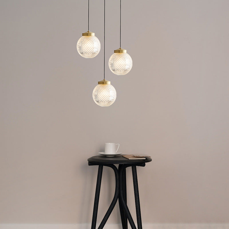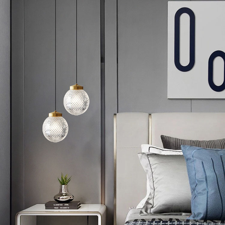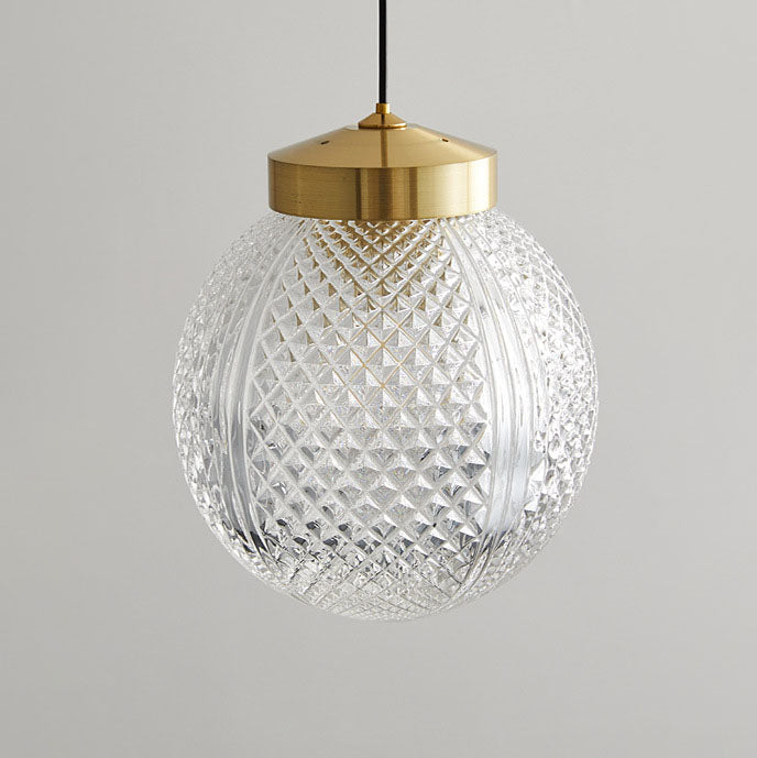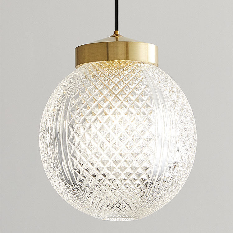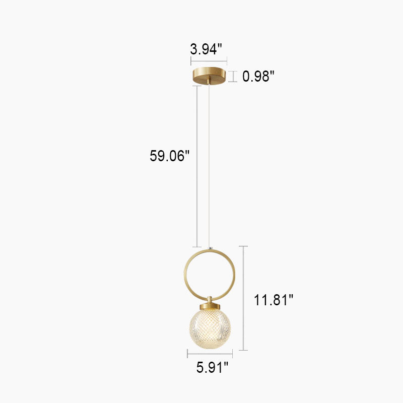 Nordic Light Luxury Striped Glass Round Ball Ring 1-Light Pendant Light
