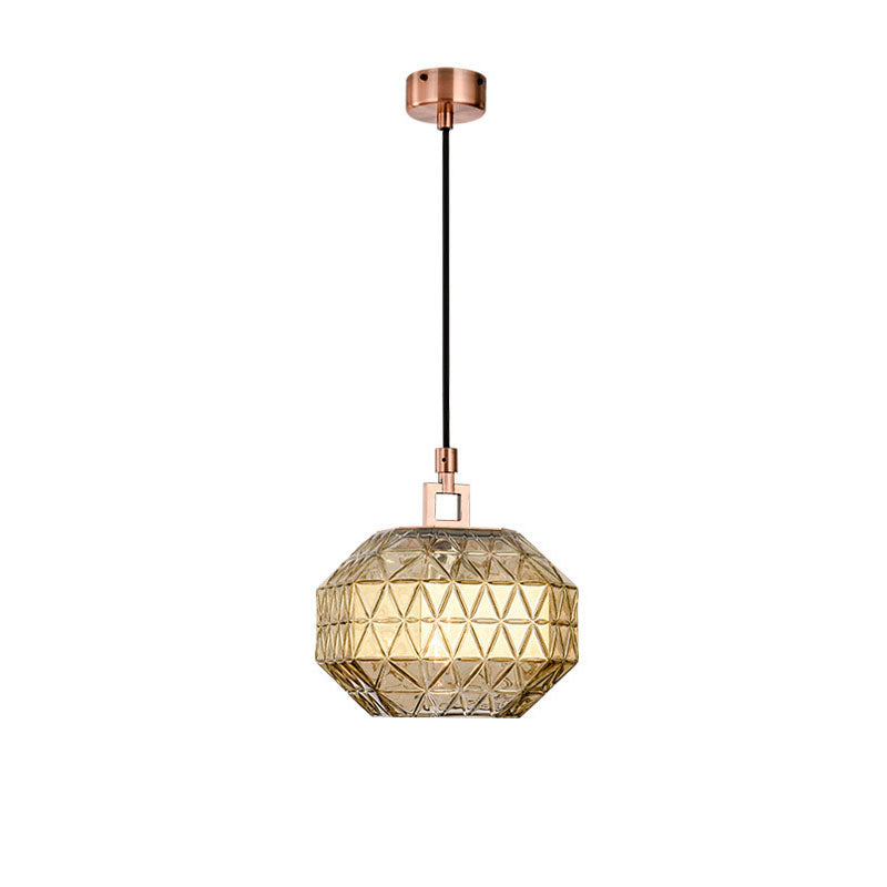 Nordic Light Luxury Textured Glass Round Metal 1-Light Pendant Light