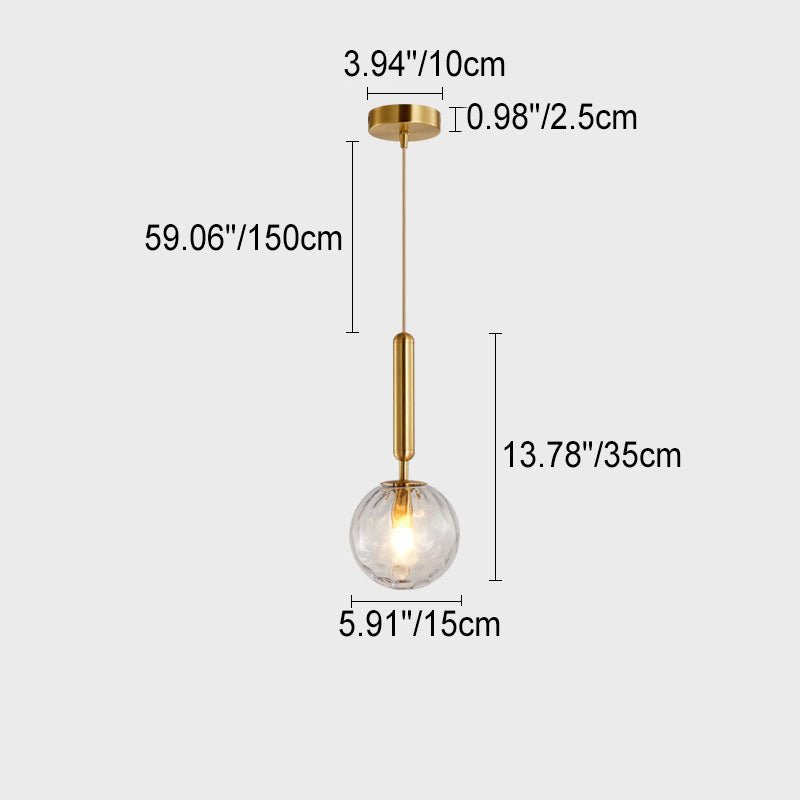 Nordic Light Luxury Water Patterned Glass Copper 1-Light Pendant Light